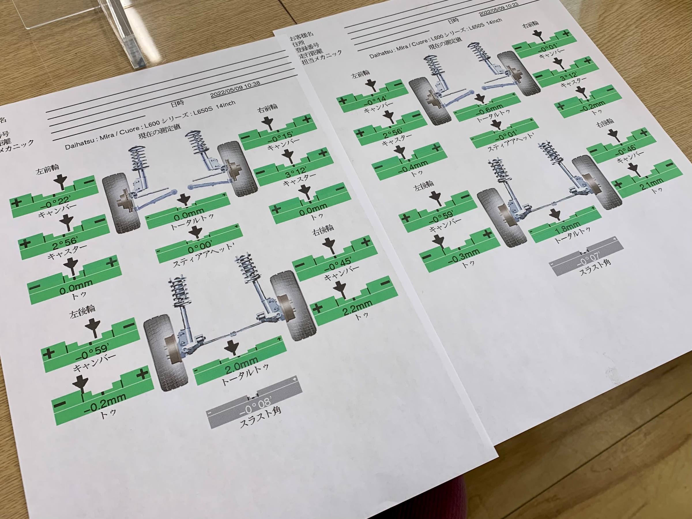 ミラジーノ アライメント調整 ポスト 2022年5月12日 ミラジーノのアライメント調整を行いました☆彡 那珂店のアライメントテスターは初めてでしたの で慣れない作業になりましたが車両の調整は同じ なのでそこは問題なく出来ました♬ 調整箇所はフロントのトーのみとなりますので基 準値に左右キッチリ合わせて完了となります☆ 不慣れで操作に時間が掛かるかもしれませんが調 整はキッチリ行いますのでよろしくお願いします♪ (寺門) #タイヤ館アライメント カテゴリ:タイヤ関連