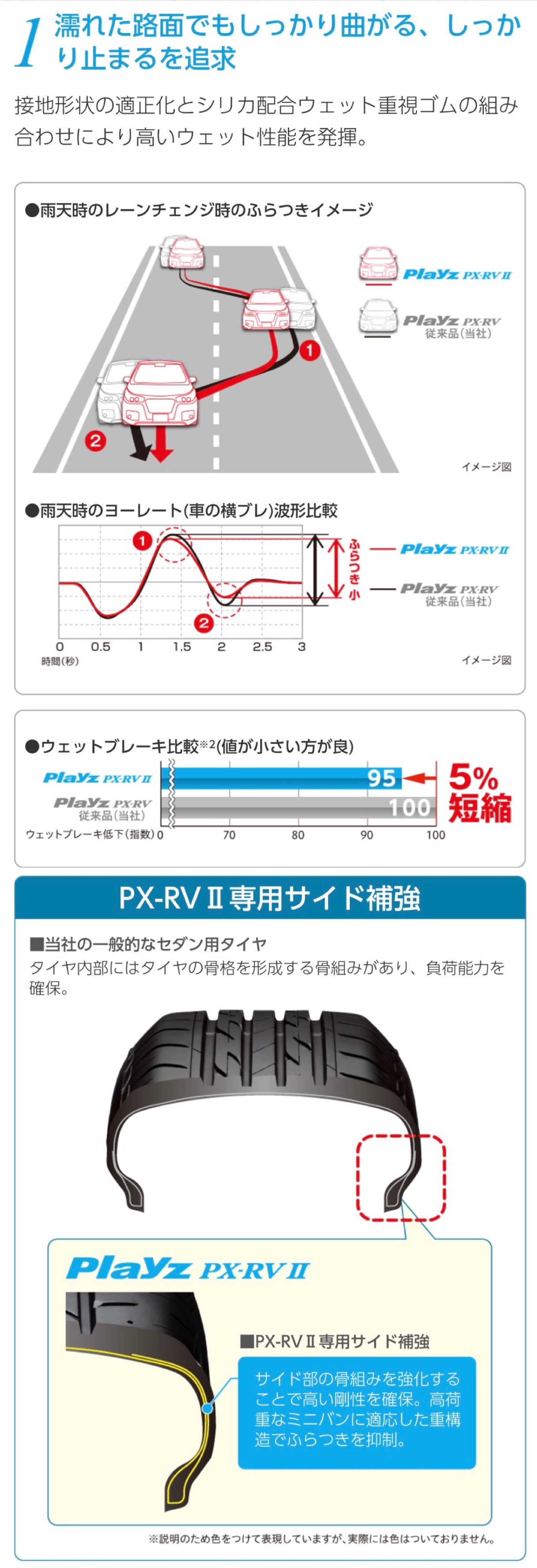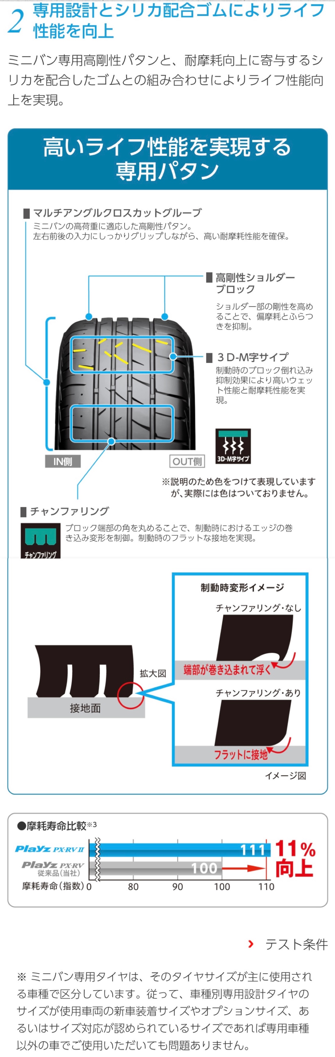 濡れた路面でもしっかり曲がる、しっかり止まるを追求し専用設計とシリカ配合ゴムによりライフ性能を向上してますので長くご使用出来るタイヤかと思います☆