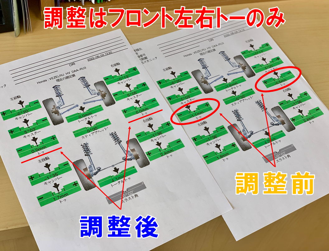 ヴェゼル アライメント調整