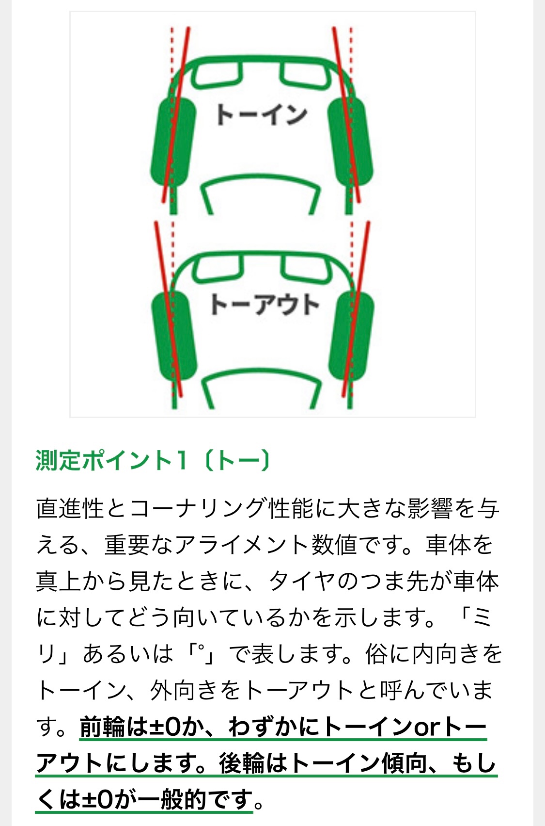 調整箇所はフロントのトーしか設定のないお車で