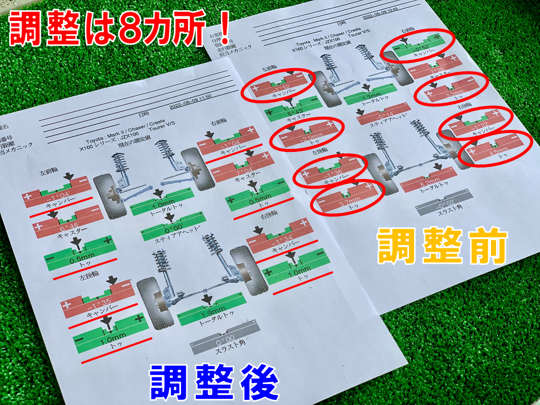 こちらのお車はなんと、、、調整箇所が8カ所も