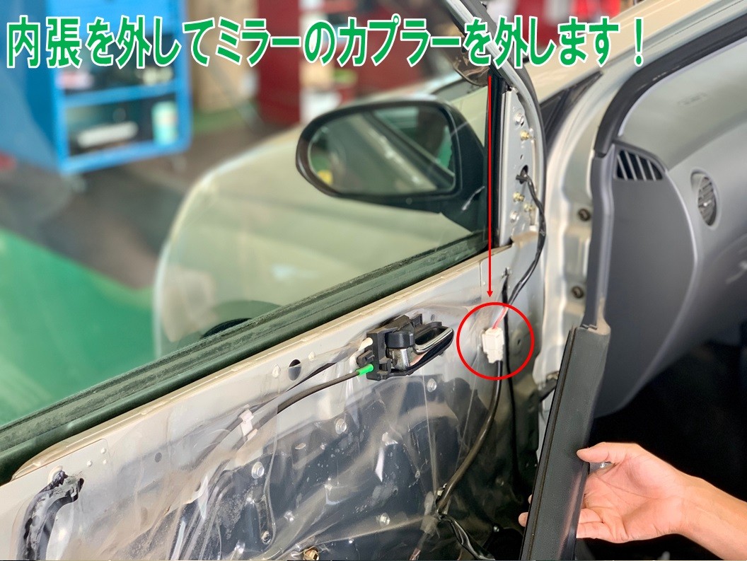 交換は内張を外してドアミラーのカプラーを外し