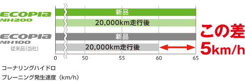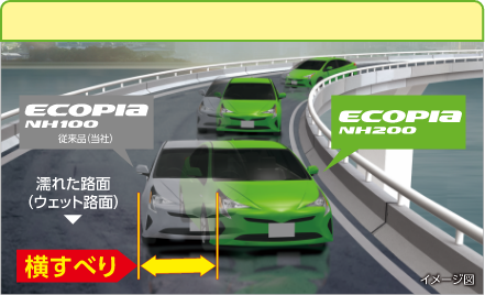 画像のように摩耗時に対してのウェット性能の持ちがNH200Cがかなり上がってます。