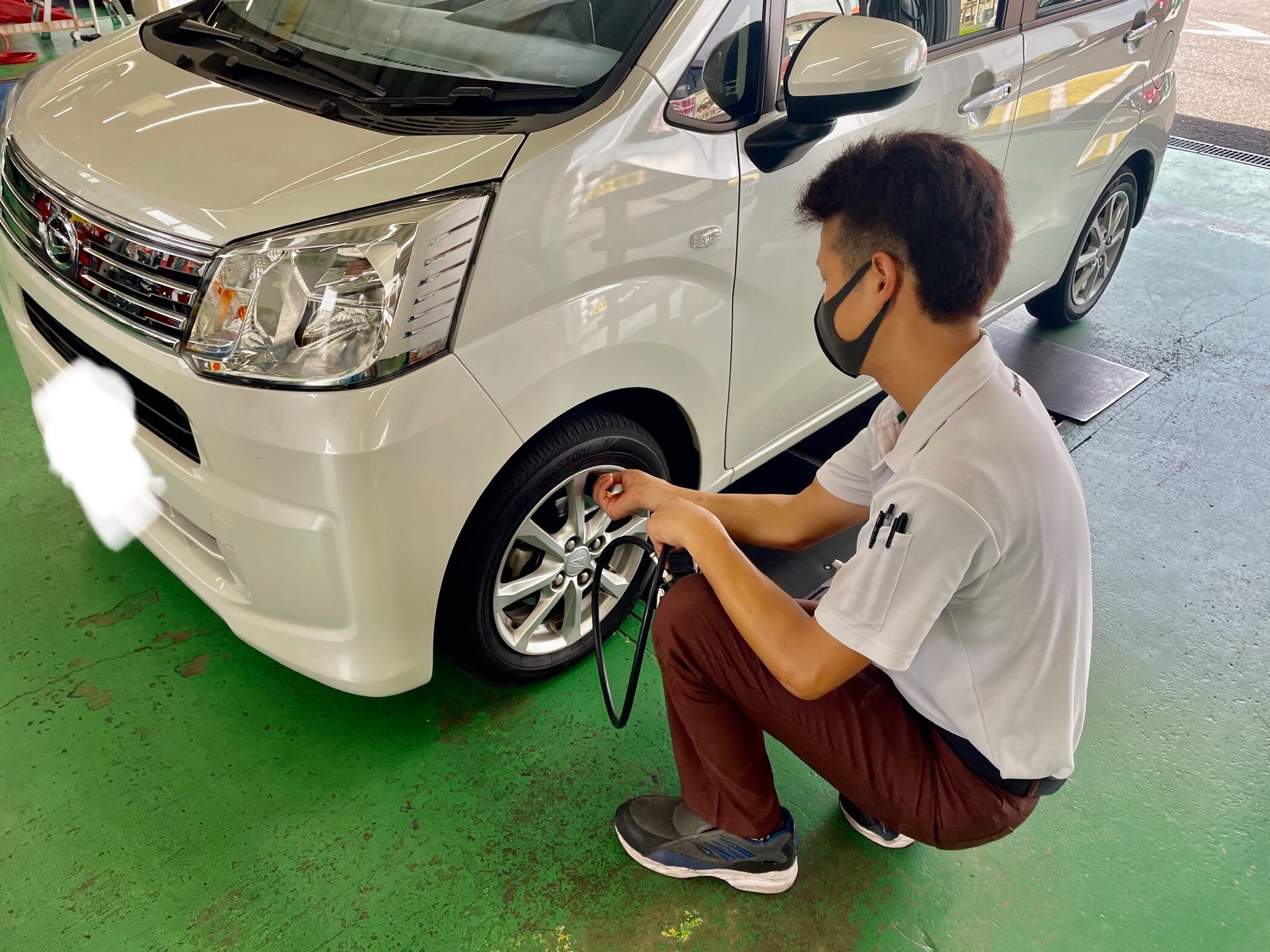 写真のようにタイヤの空気圧とナットの締め付けの確認をさせて頂いて終了となります。