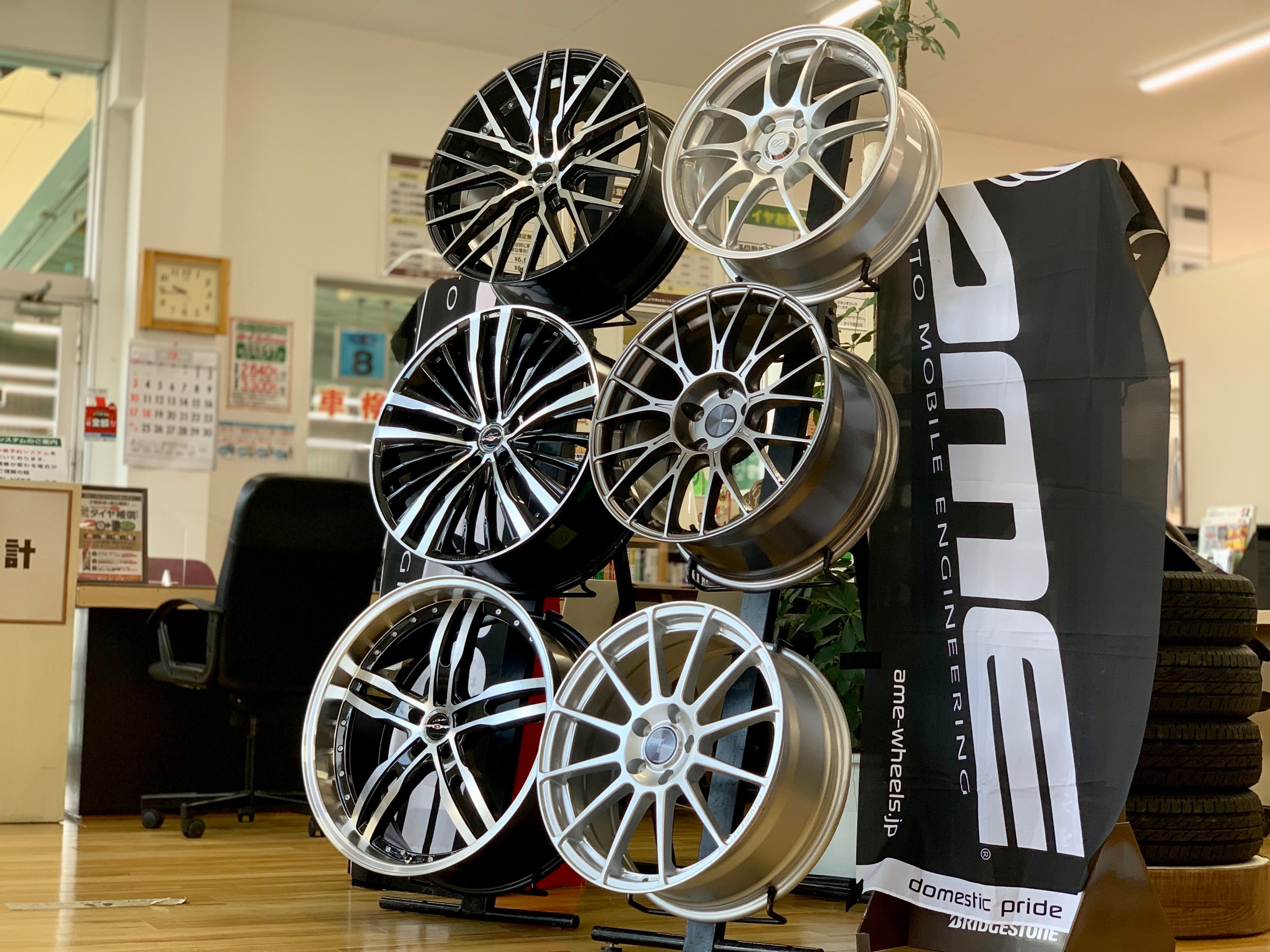 一緒に人気のENKEI wheelも展示しておりますの