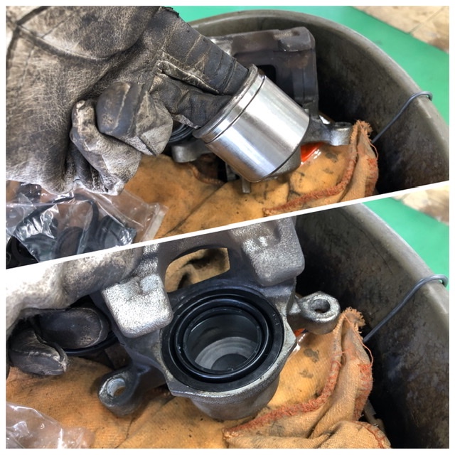 ピストンを抜いて、新しいダストブーツに交換して完了!