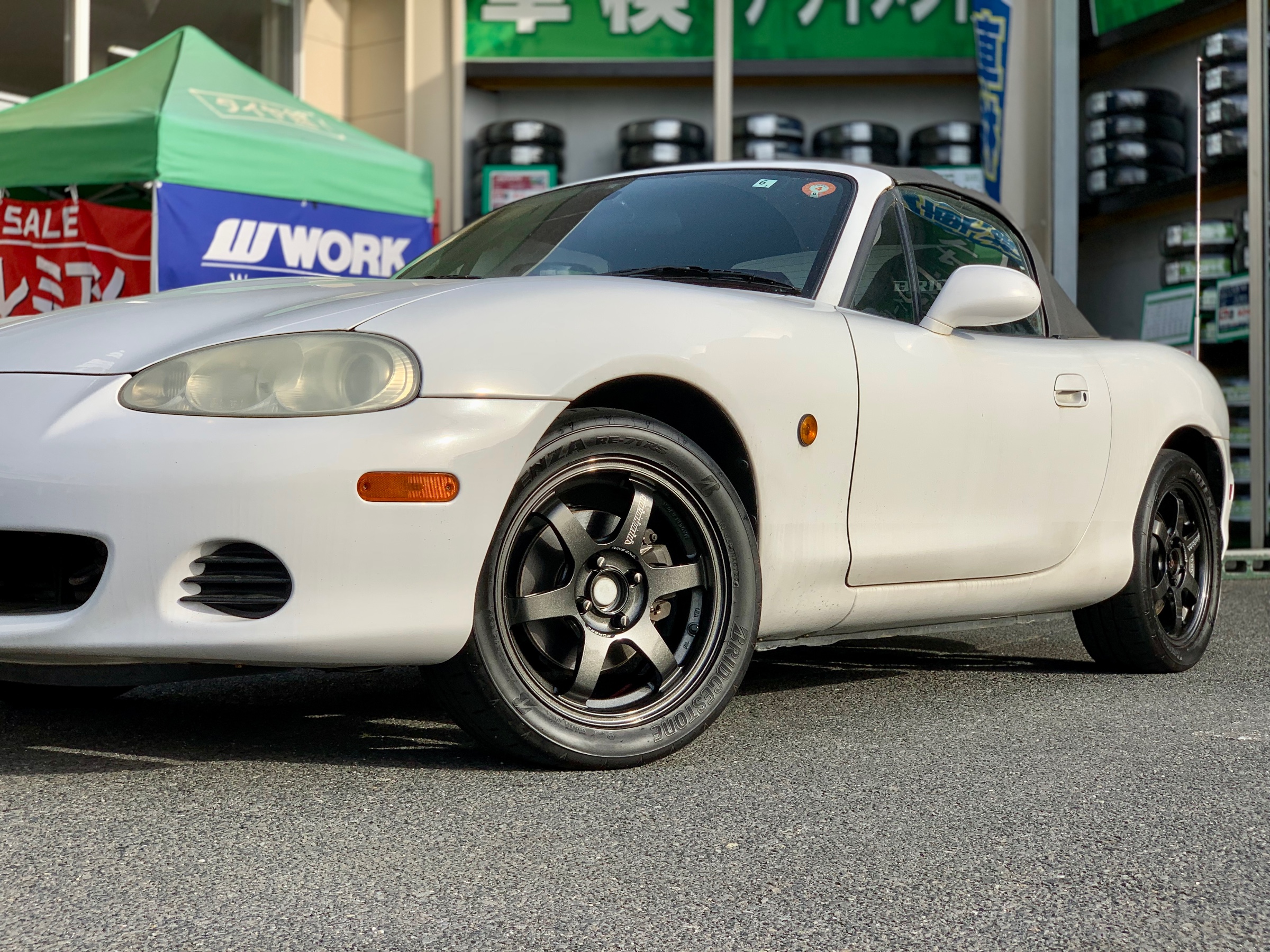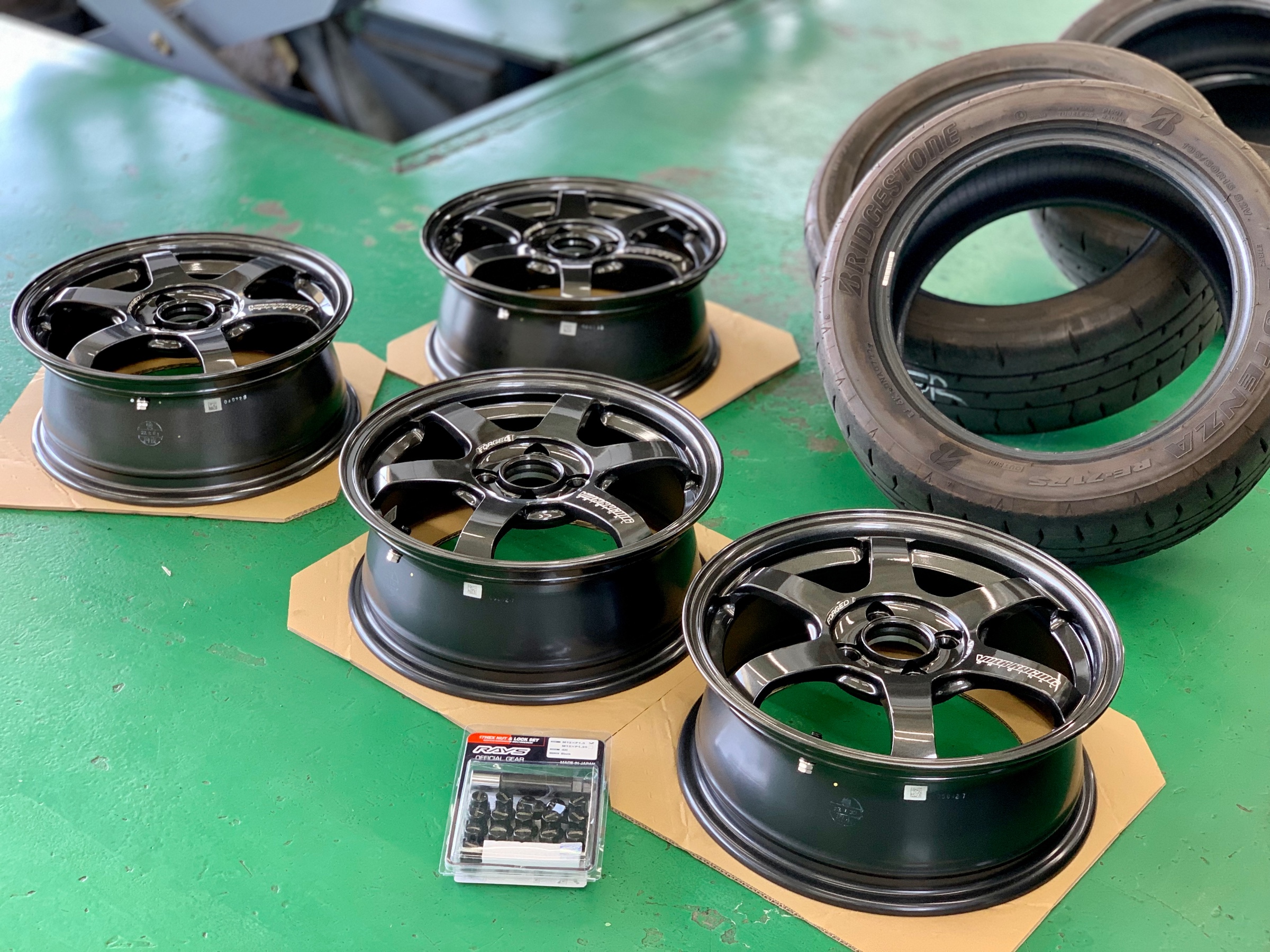 去年の8月にレイズホイールをご予約頂きましてやっと入荷しましたホイールをロードスターにお取り付け作業しました☆彡