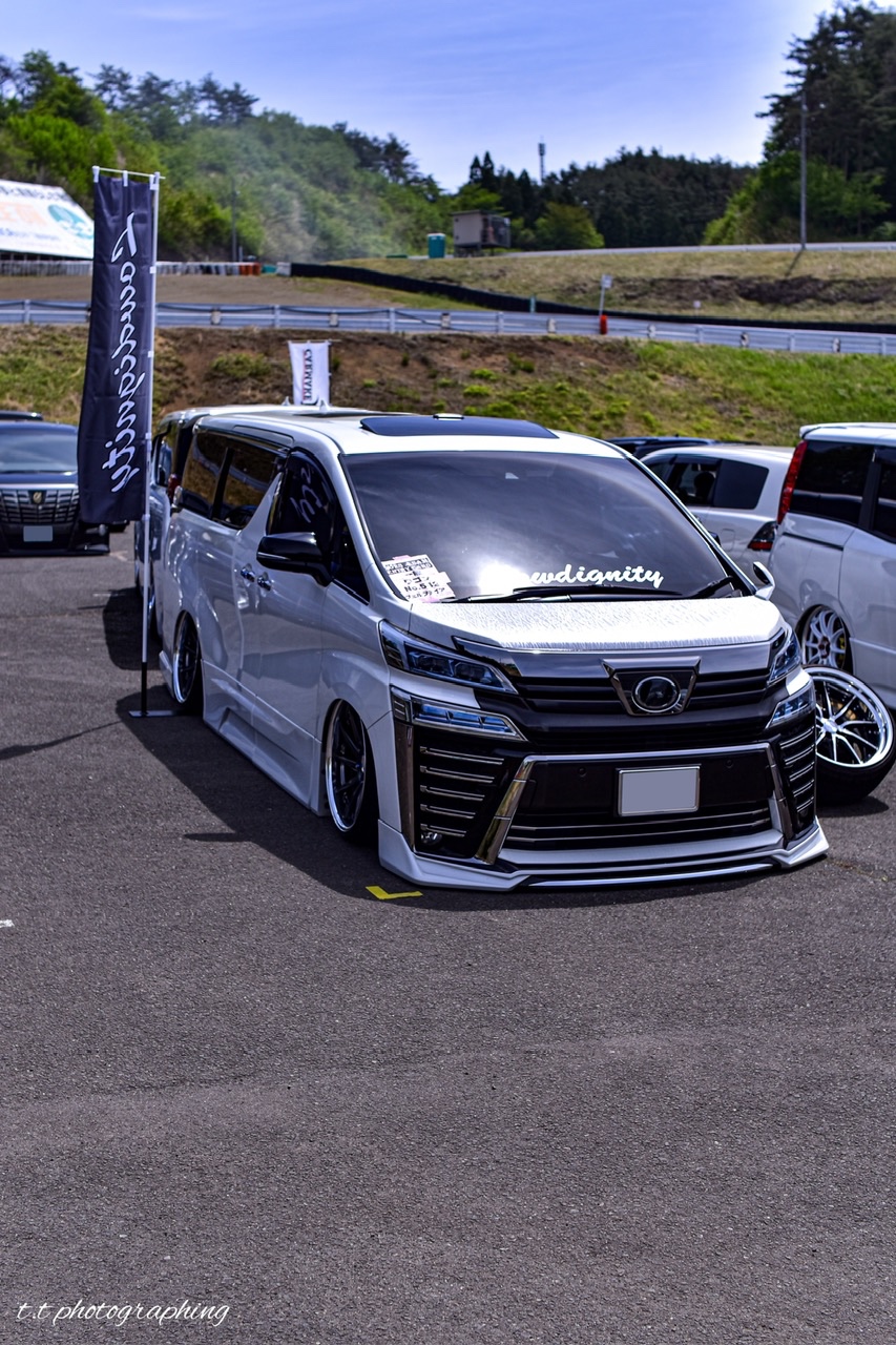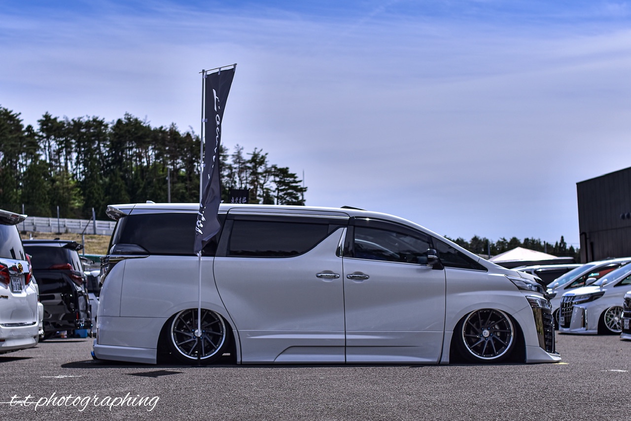 ※イベント会場内で見せる仕様の為車高を下げてフロントガラスに文字をワイパーで固定してます。