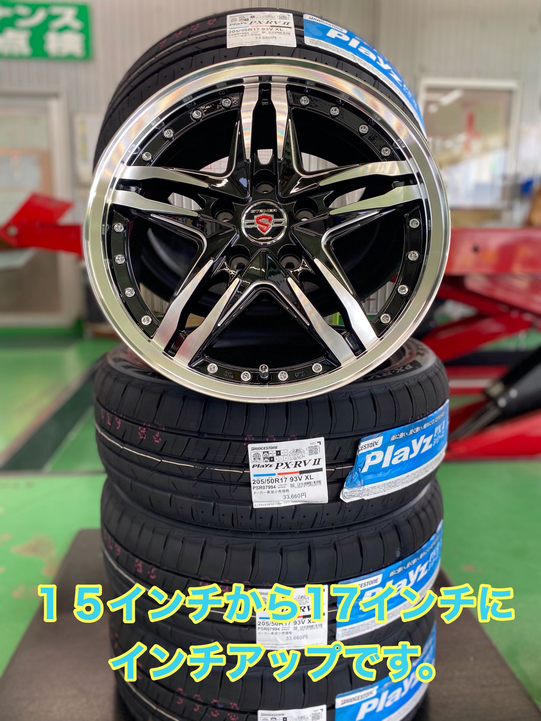 新車装着タイヤは15インチなのですが、今回は17インチにインチアップです。