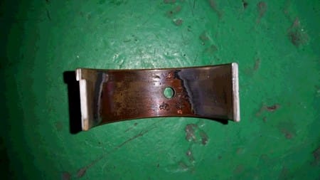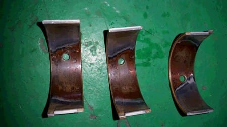 場所的にクランクシャフトのメタル付近から音がするのでバラしてみるとメタルに焼き付き&キズで大変な事に!これでは異音が出て当たり前です。修理しないと直りません。