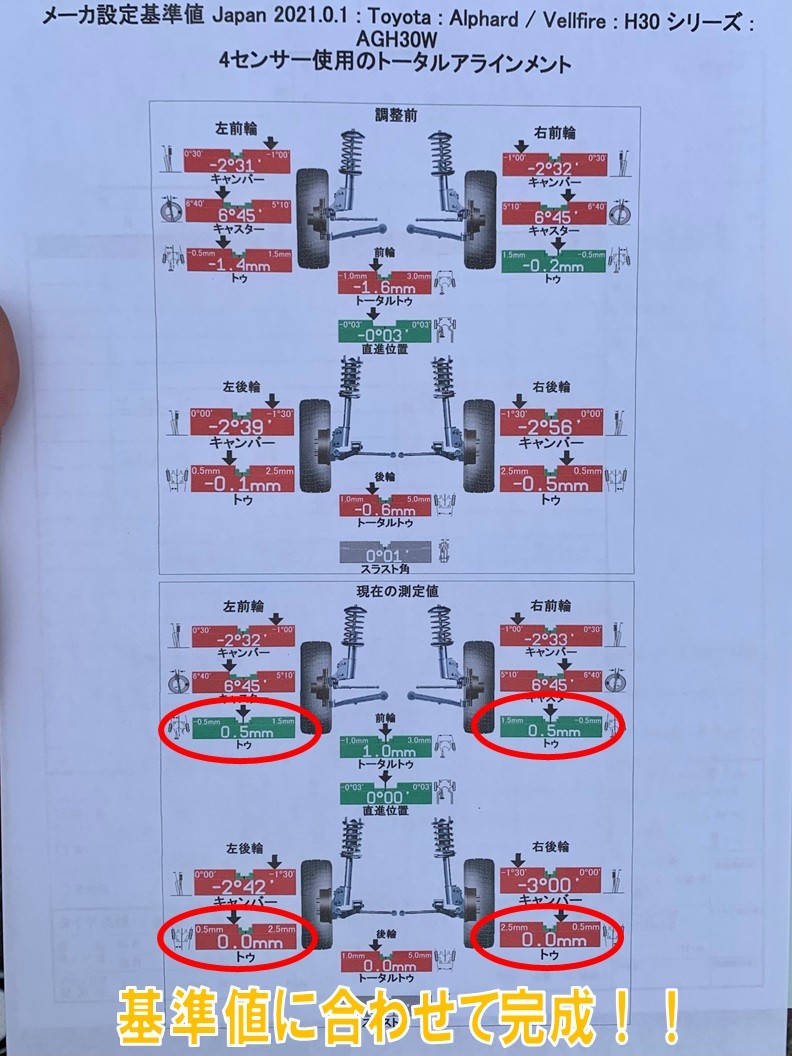 最後にアライメントを行いまして今回はトーのみ調整しまして無事終了!!