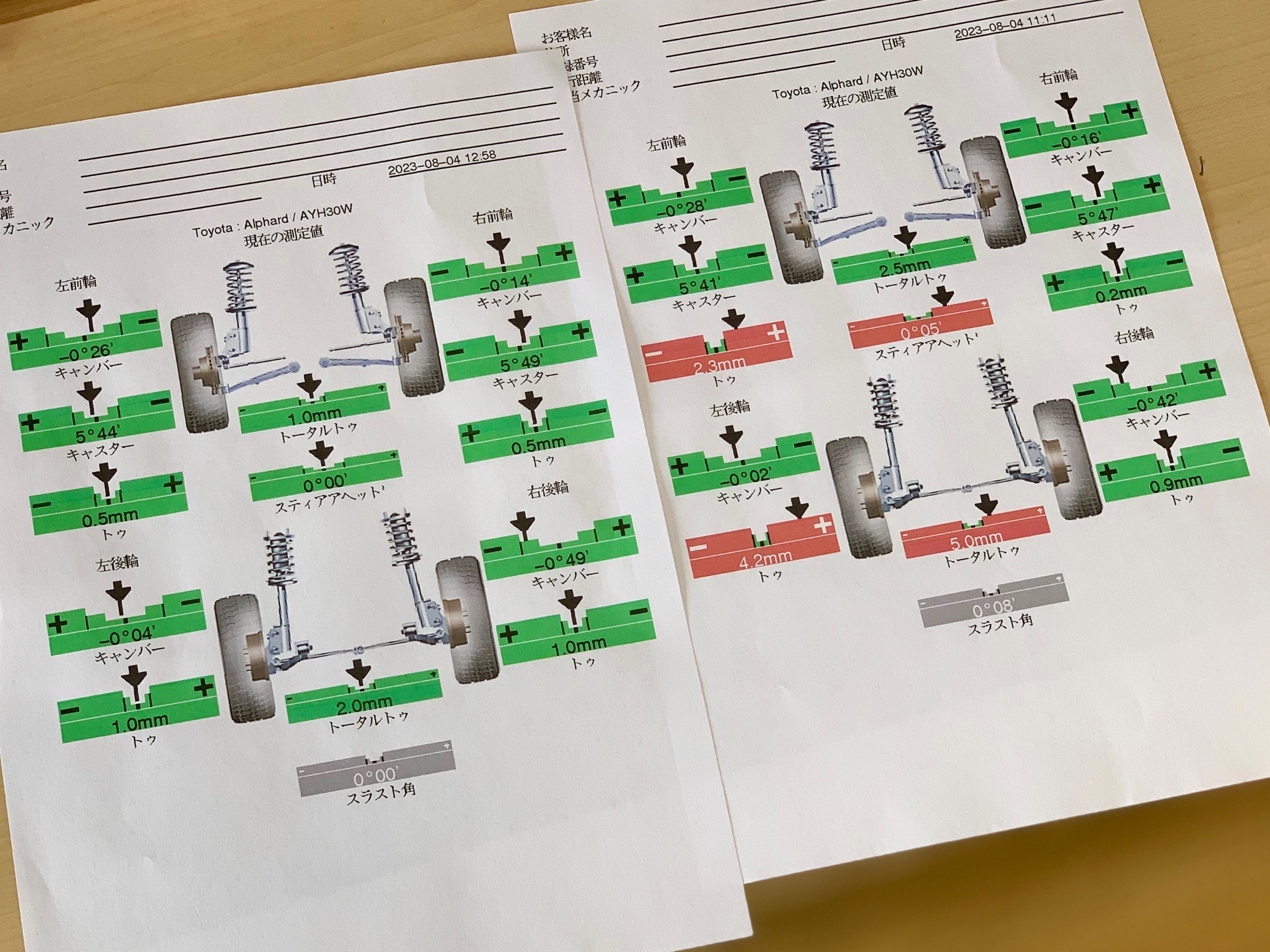 トー調整で基準値に収まりましたのでこれでご安心してお乗り頂けるかと思います♪