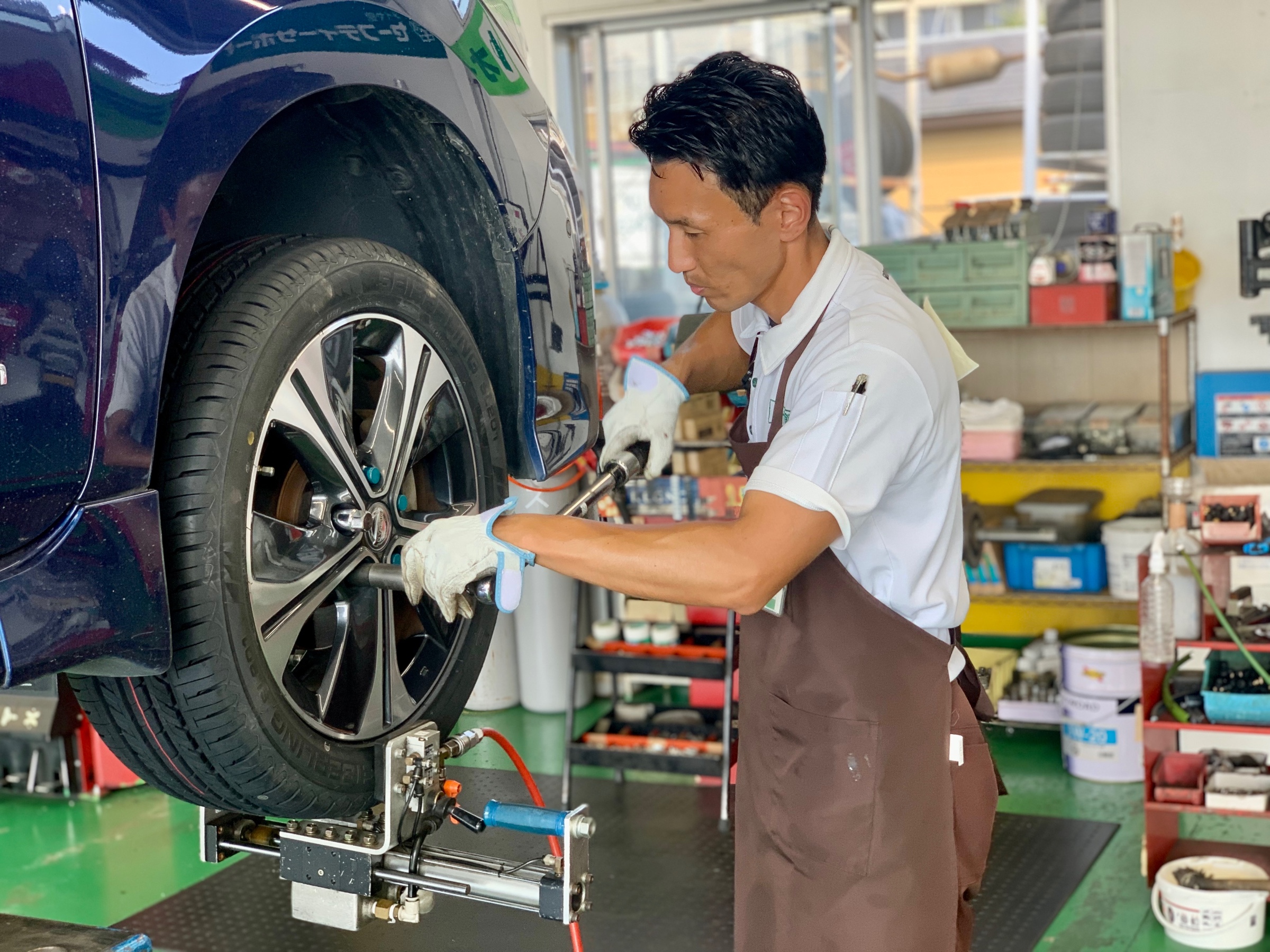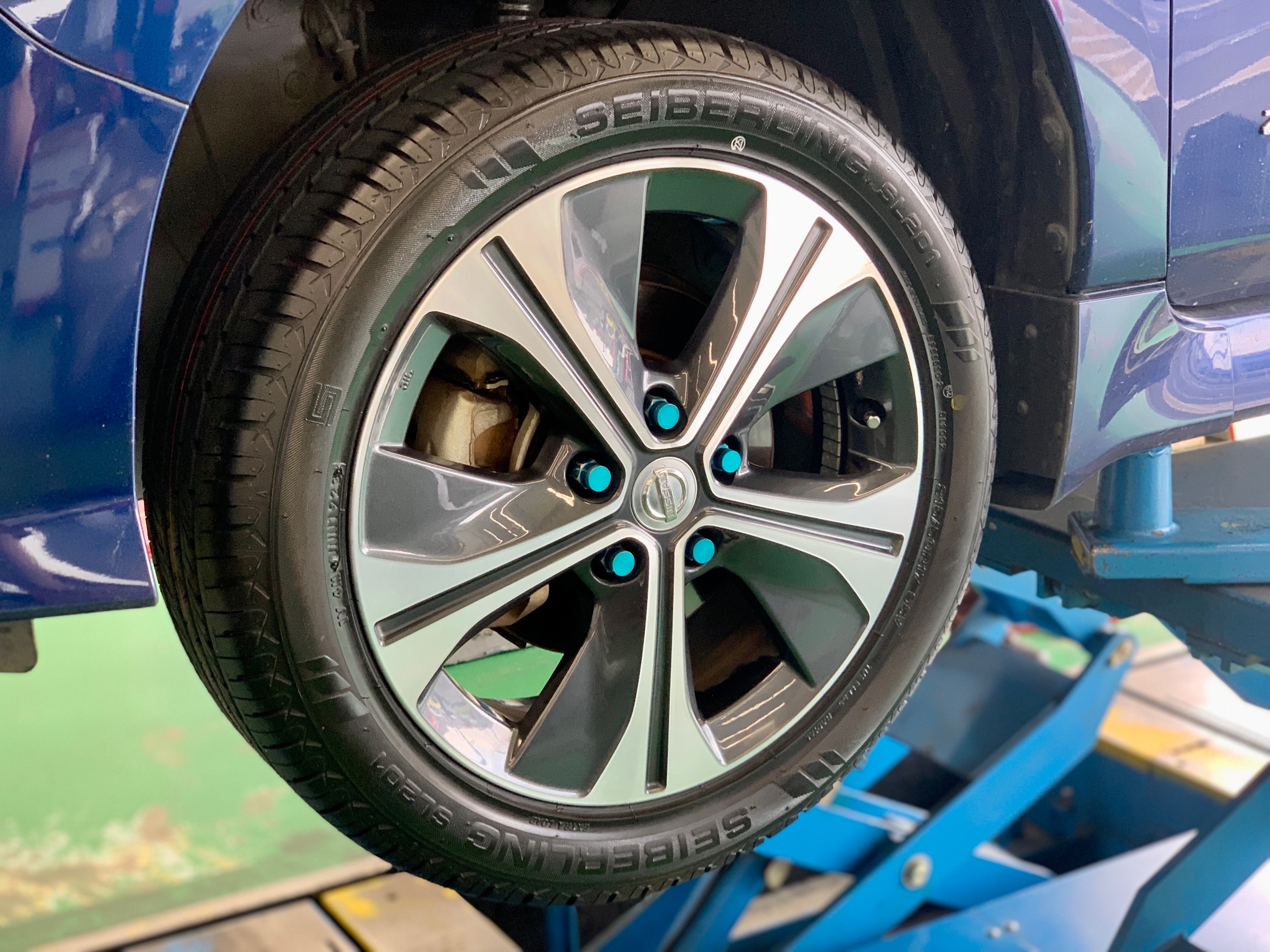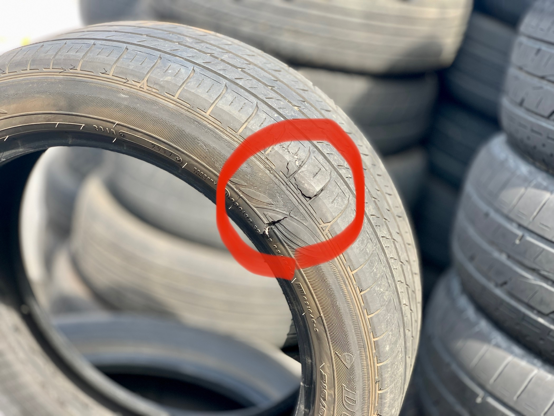 タイヤを縁石に当てたらしくパンクでご来店くださいましたが、サイズが215/50R17で在庫が無く車載スペアも無かったので当店のスペアタイヤをお貸しして入荷までお待ちいただきました。