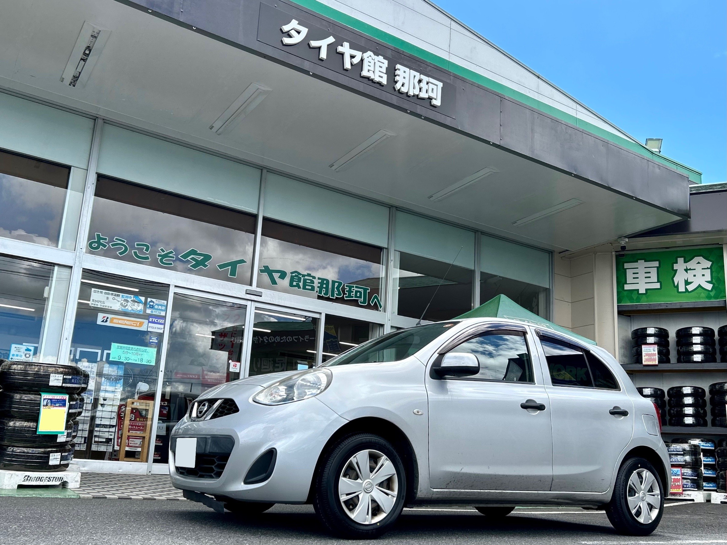ご予約頂いていましたマーチのタイヤ交換作業です☆彡