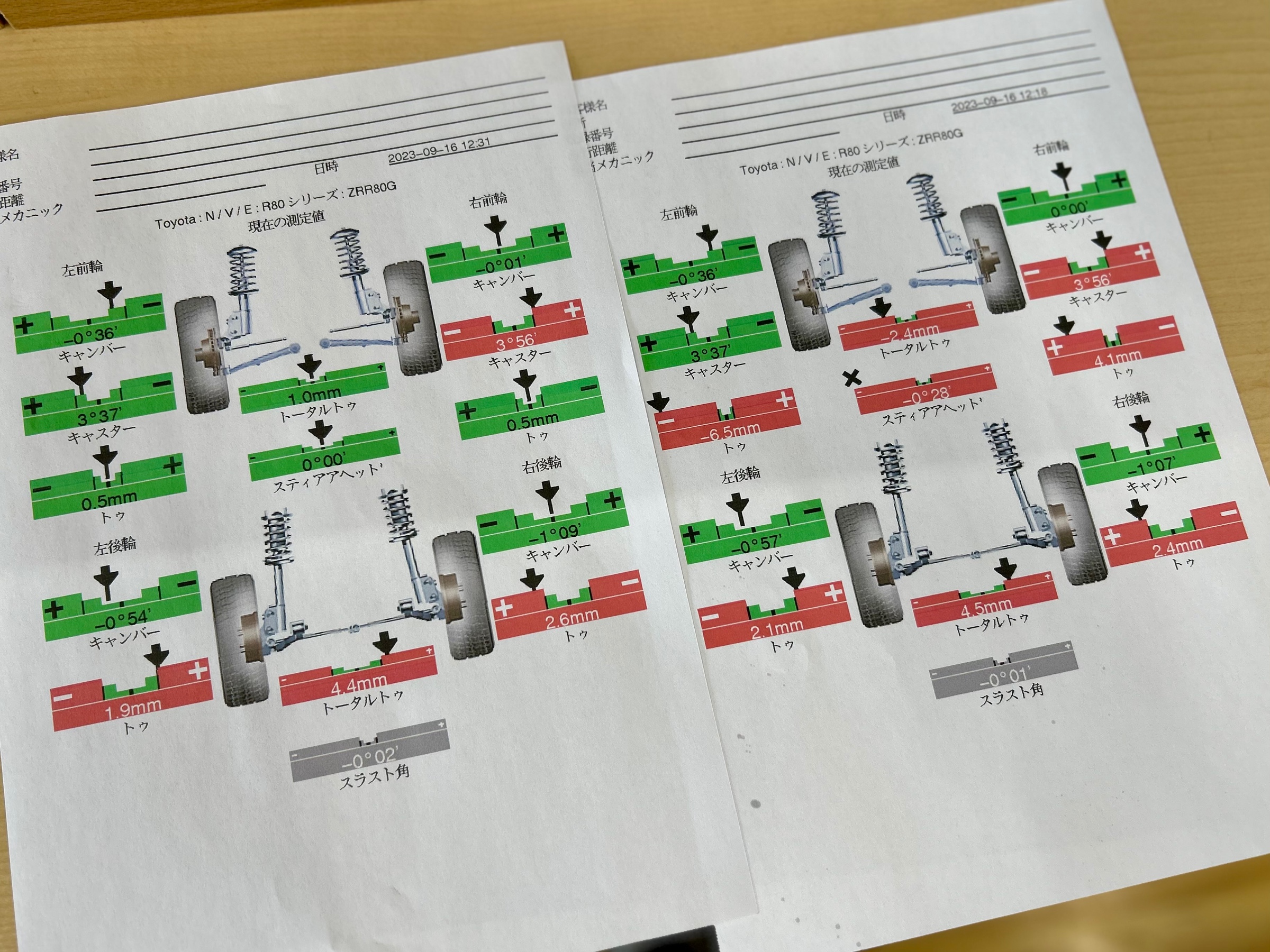調整箇所はフロントのトー2箇所になりますので左右基準値に合わせて終了となります♪