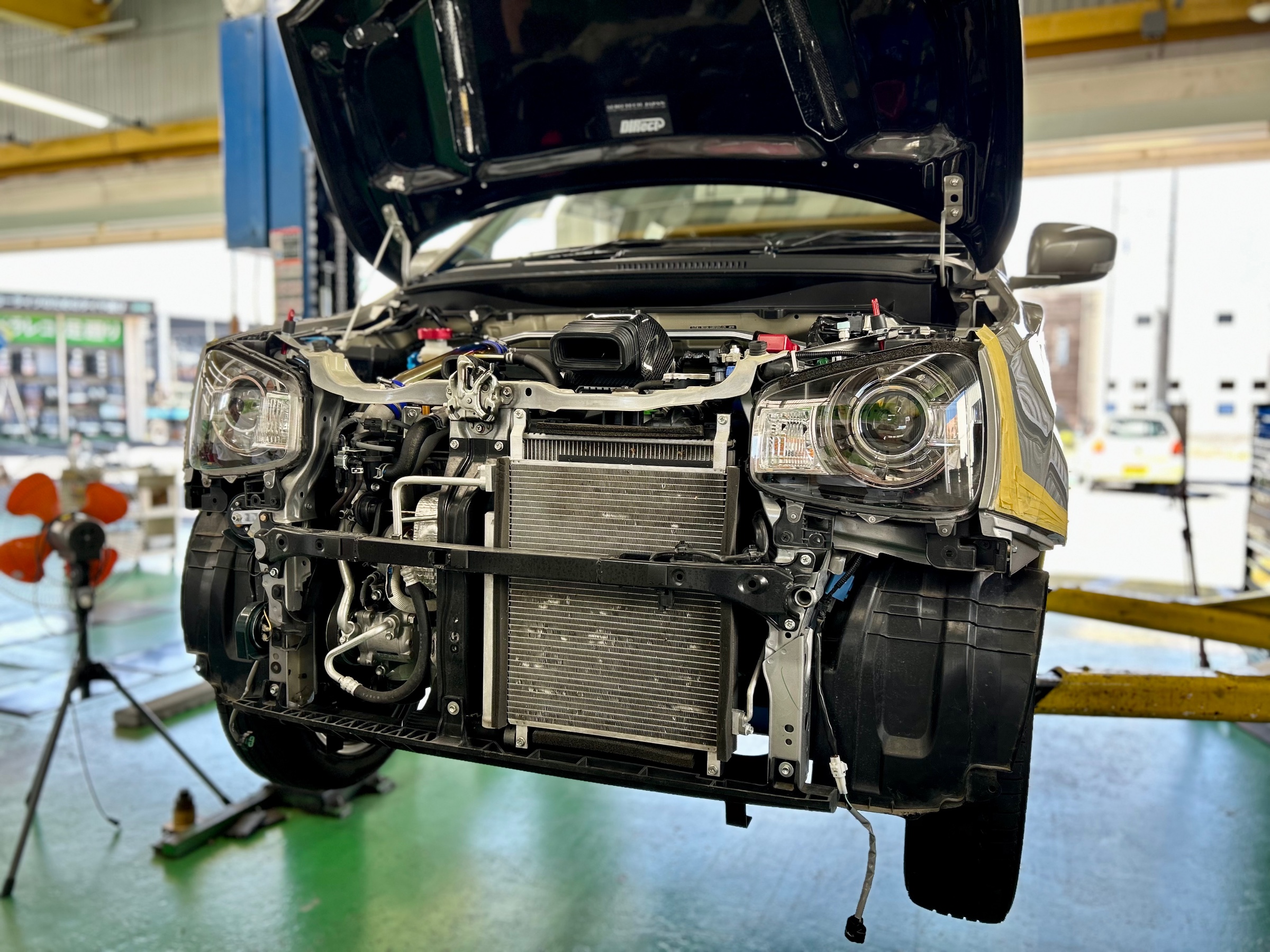 ヘッドライトを外さなくては作業スペースがないのでバンパーを外して作業を進めていきます!