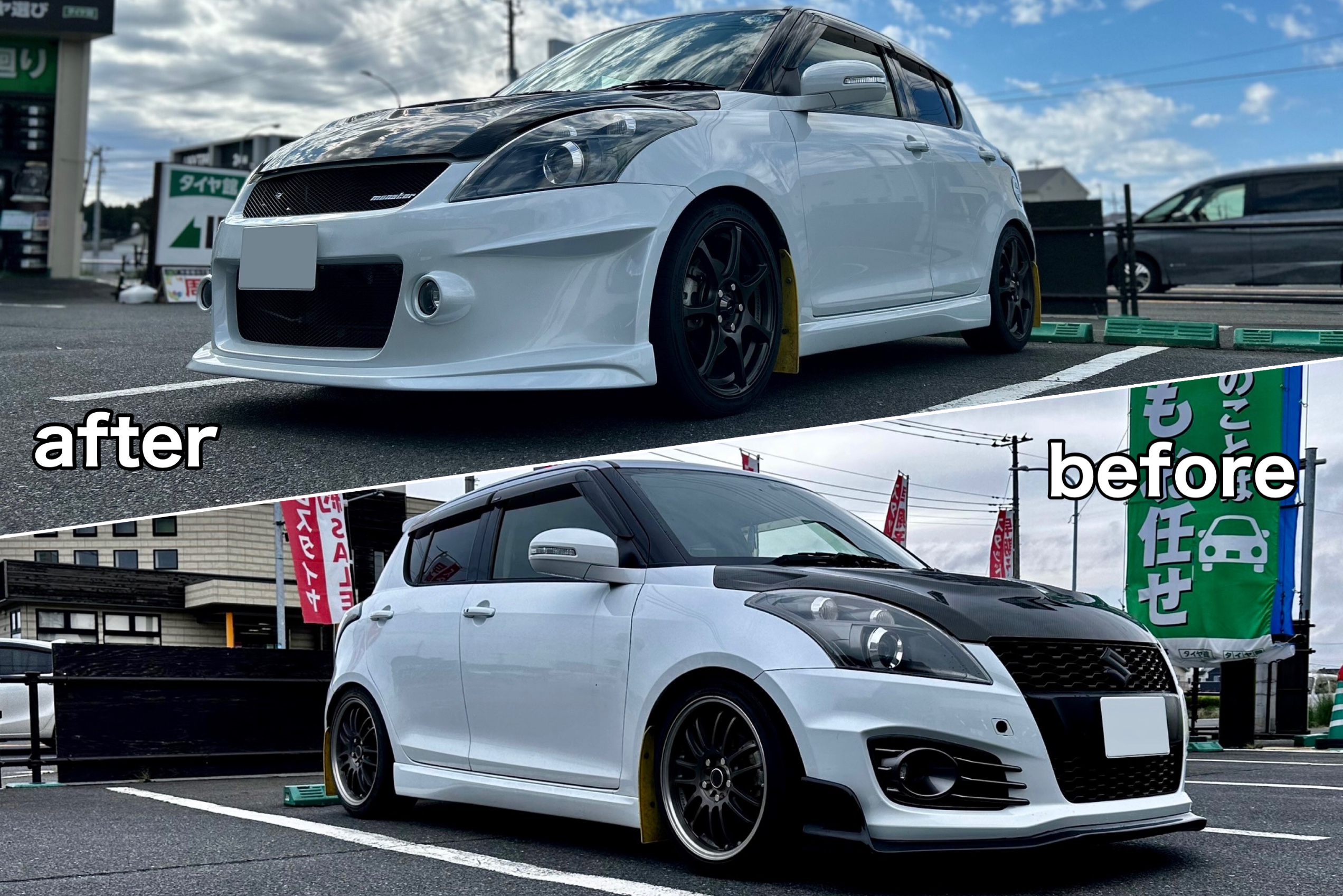 フロントバンパーは塗装が必要でしたのでお取引のある板金屋さんにご依頼し塗装取付けを行ってもらいましたのできれいに仕上げてくれました☆