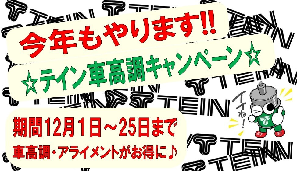 来月はテイン車高調のキャンペーンも行いますのでお見逃しなく!!