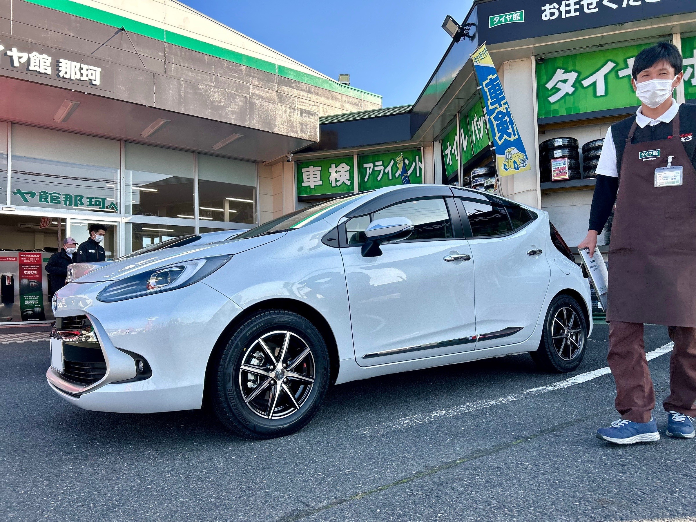ご予約頂いておりましたアクアにブリザックスタッドレスホイールセットをお取付け致しました☆彡