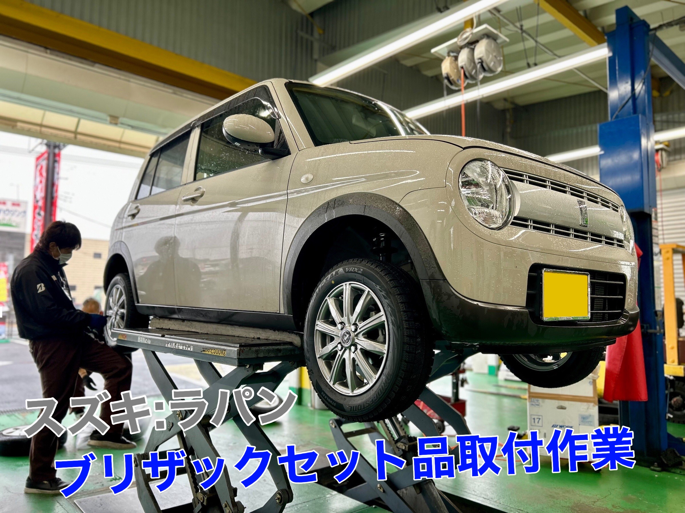 ラパンにブリザックスタッドレスセット品の取付作業を行いました☆彡