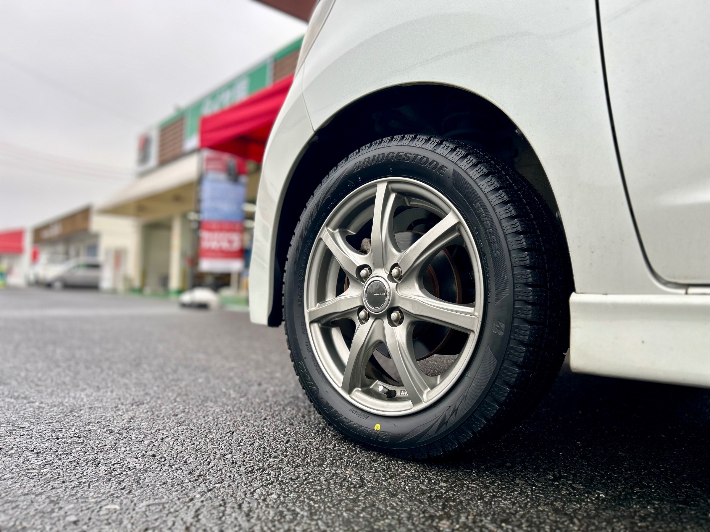 別の車両でご使用されていましたスタッドレスのサイズが違く、ホイールはそのままご使用できましたので適正サイズにて交換作業を行いました!
