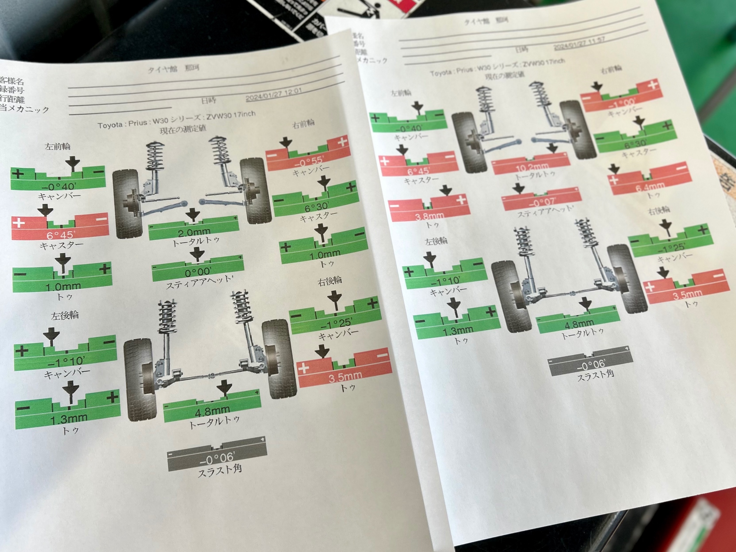調整箇所はフロントトー左右のみでしたので基準値に合わせて終了!