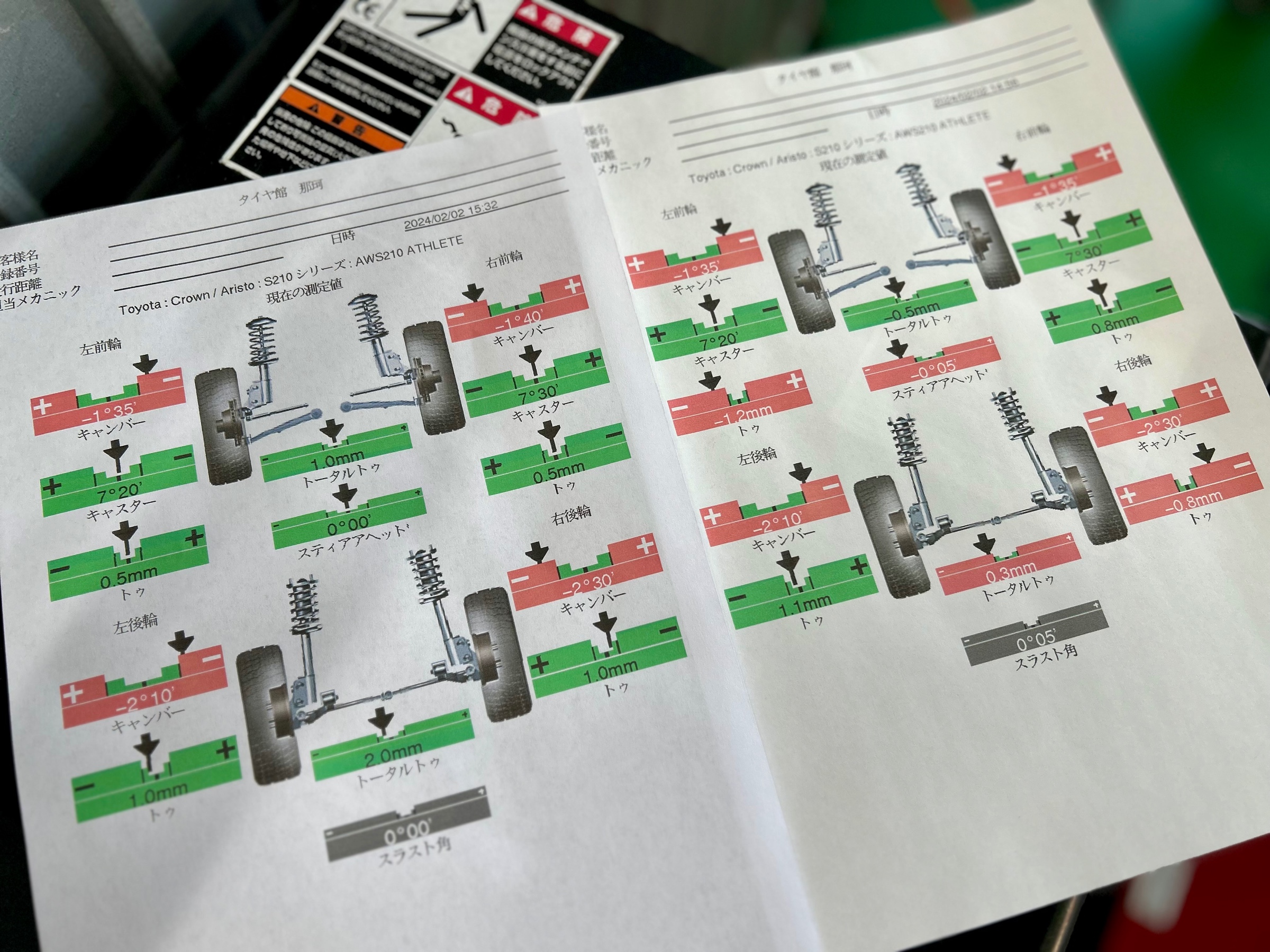 調整箇所はフロント・リアのトー4箇所になりまして左右キャンバーとの兼ね合いでを見て調整を行いました☆