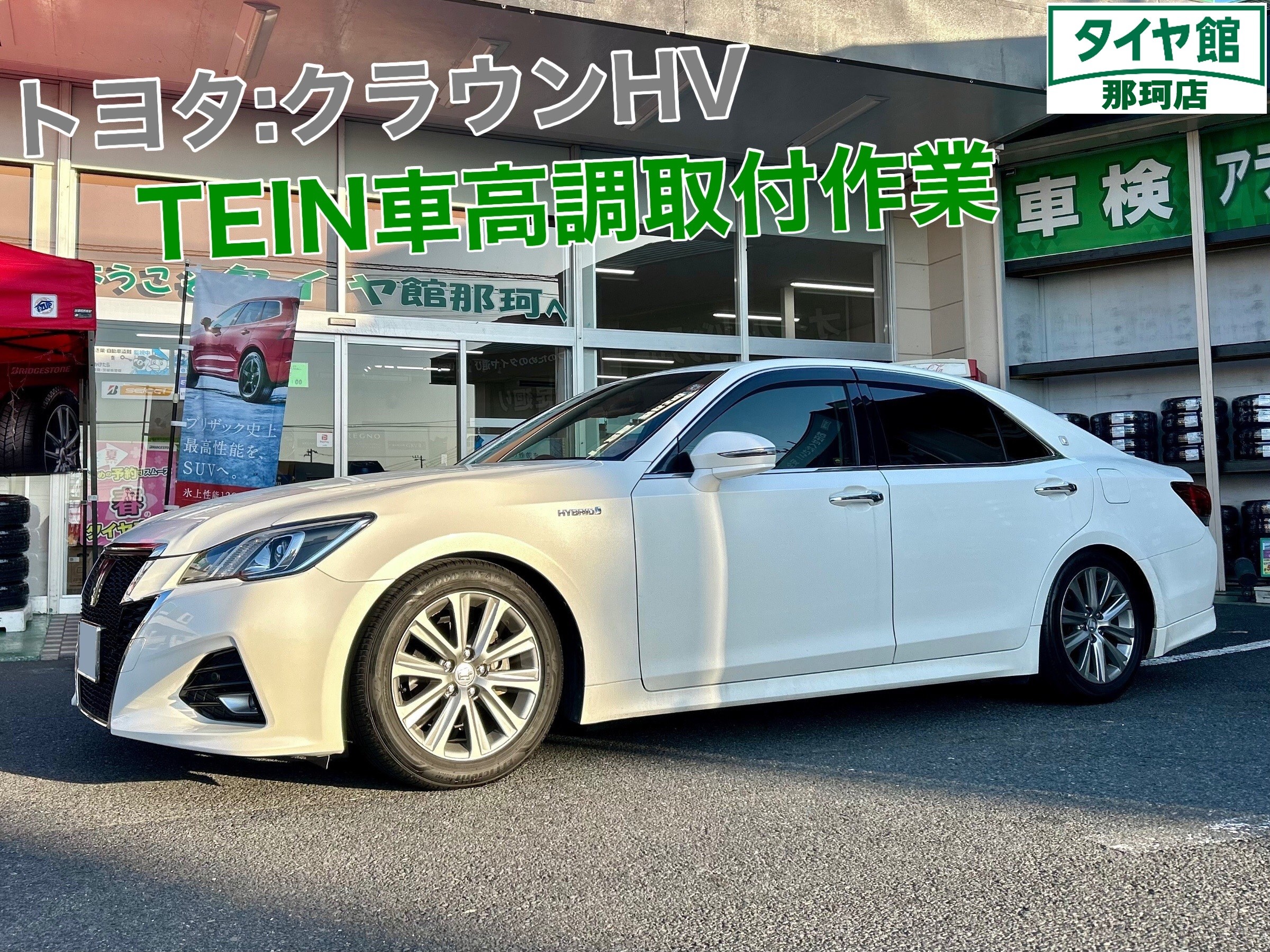 テインキャンペーンでご予約頂いておりましたクラウンHVに先日車高調をお取付けしました☆彡