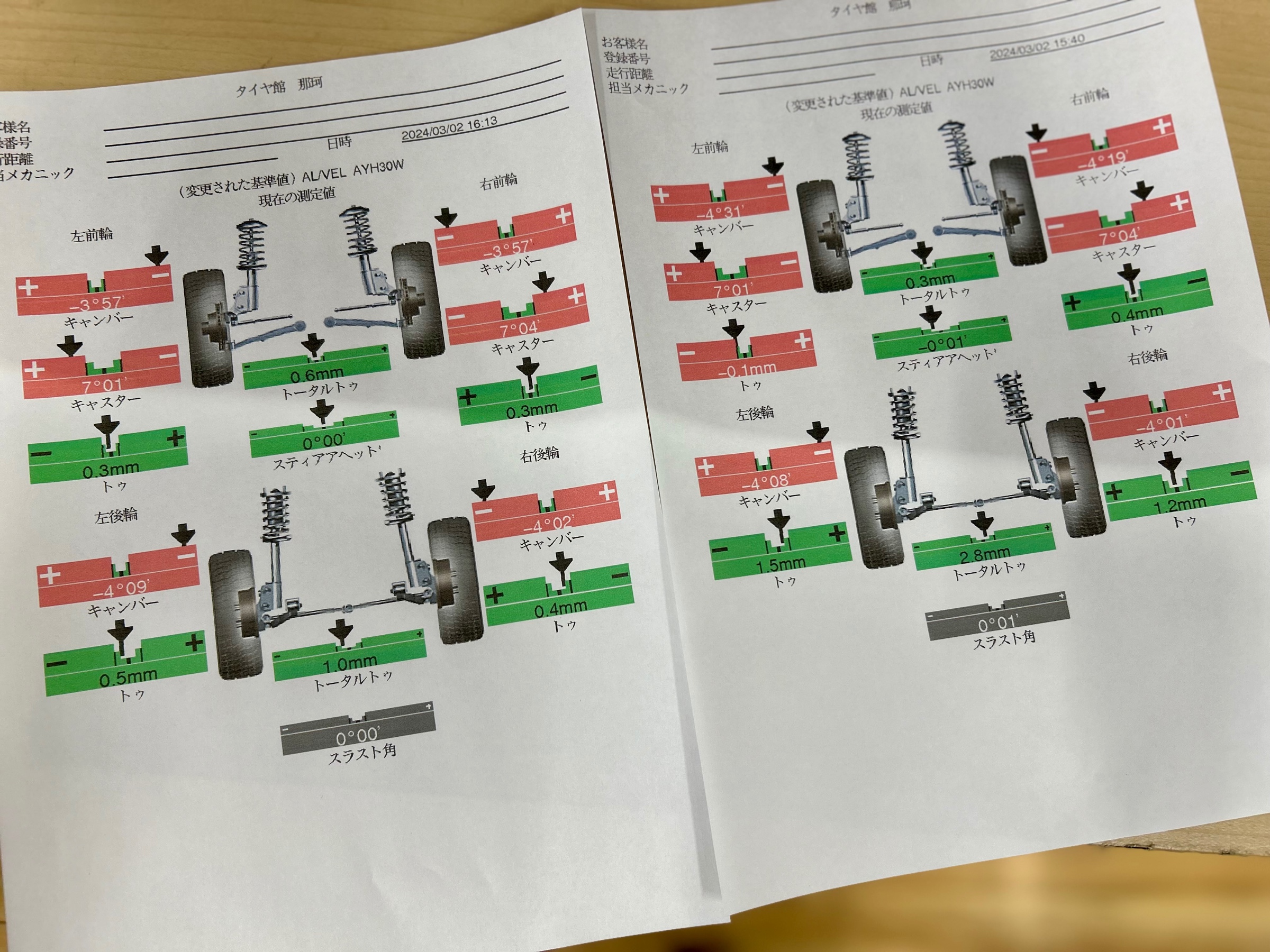 先日ピロアッパーを交換しましたヴェルファイア のアライメント作業になります☆彡