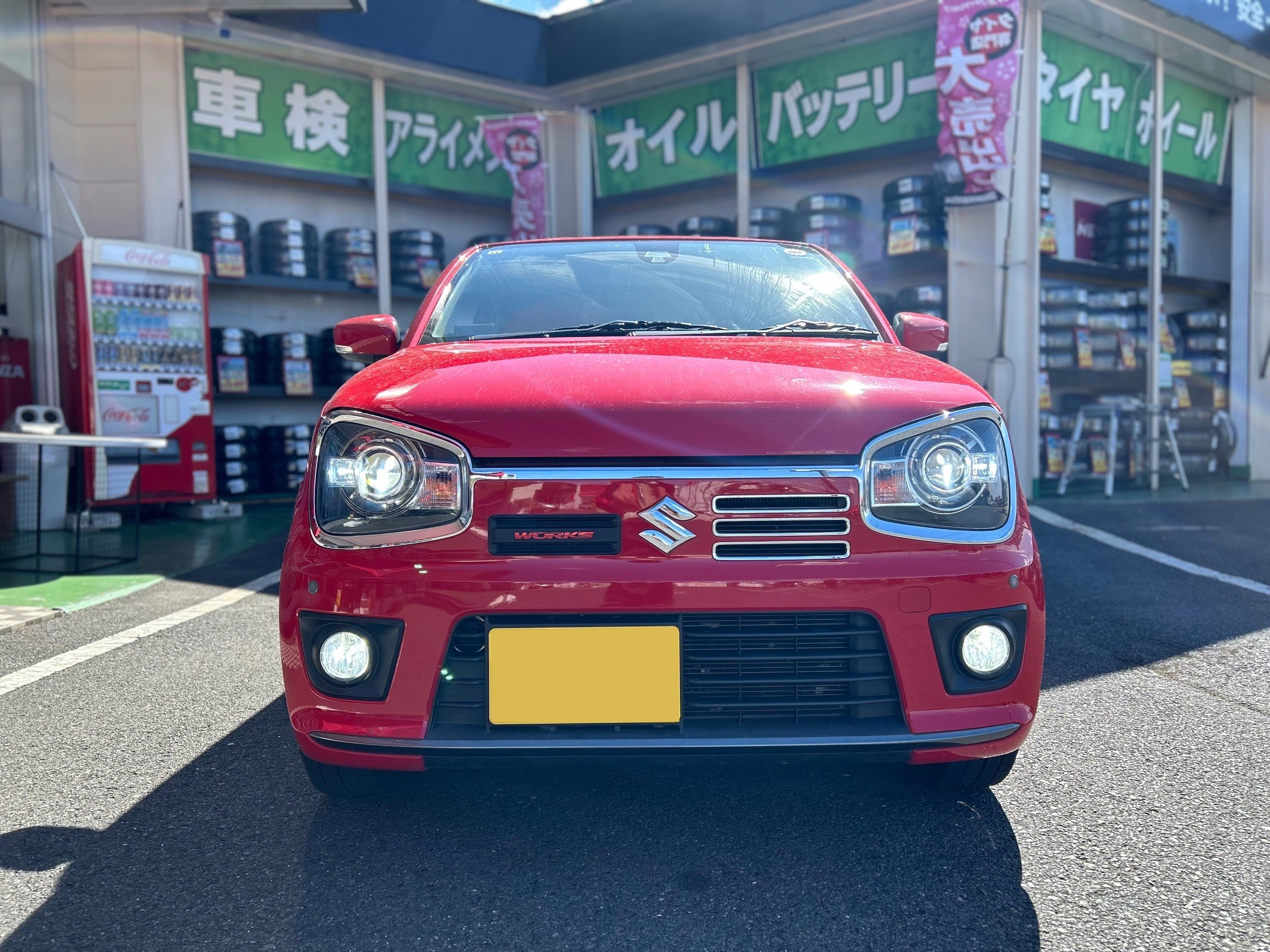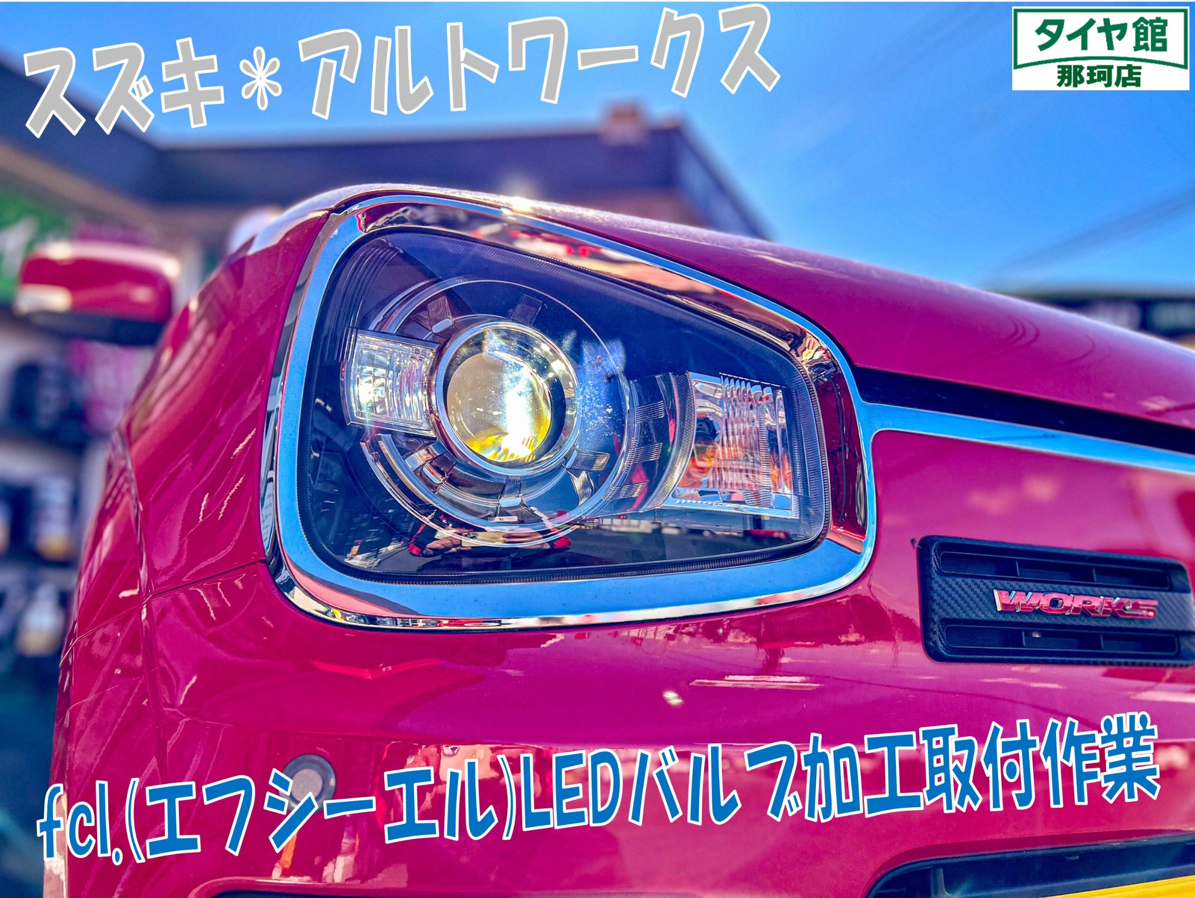 当店のWEBをご覧くださいまして千葉県からお越しくださいましたアルトワークスにfcl.(エフシーエル)LEDバルブのお取付けを行いました☆彡