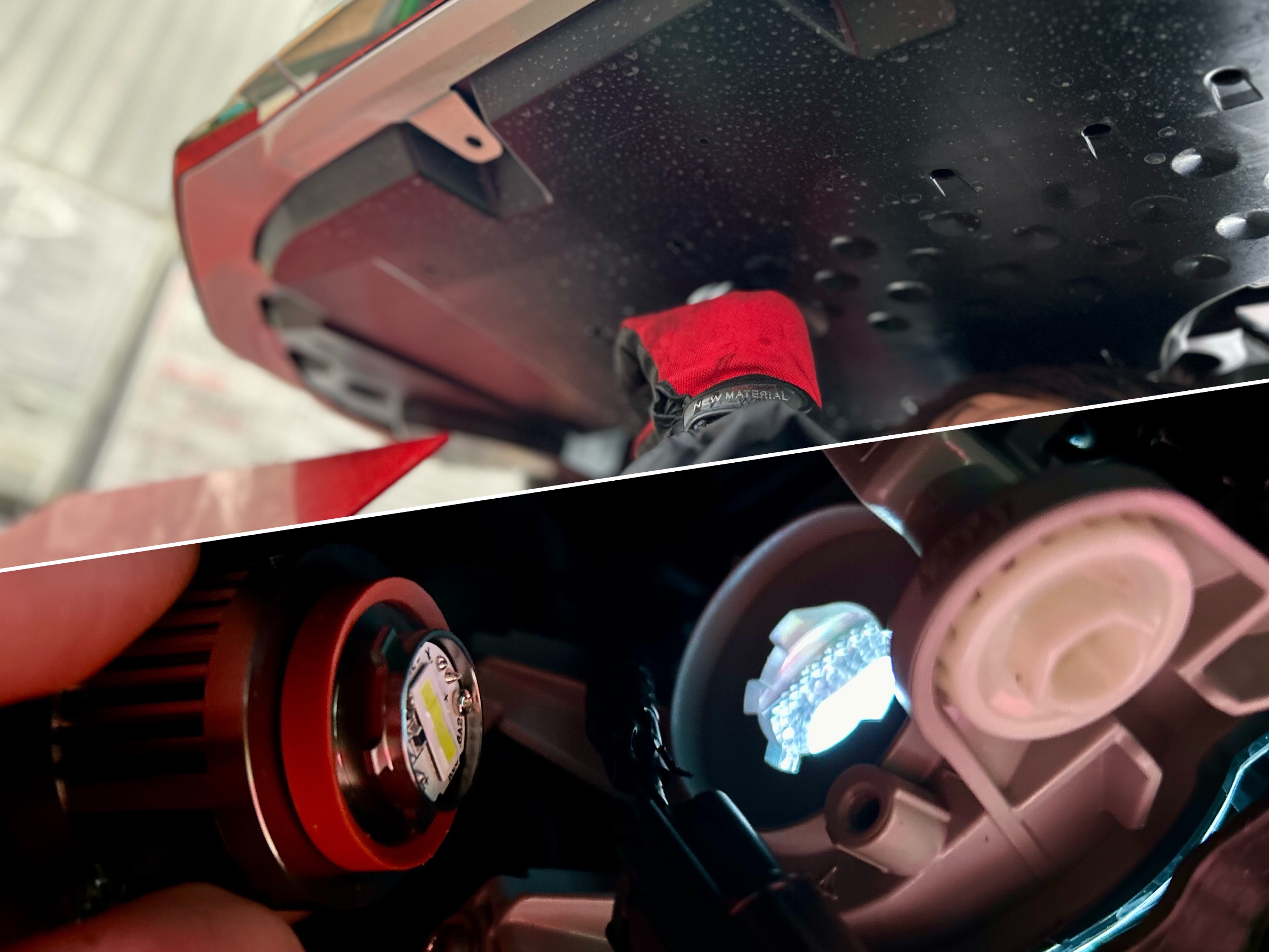 交換作業はアンダーカバーを外し専用工具で純正のLEDバルブを外します!