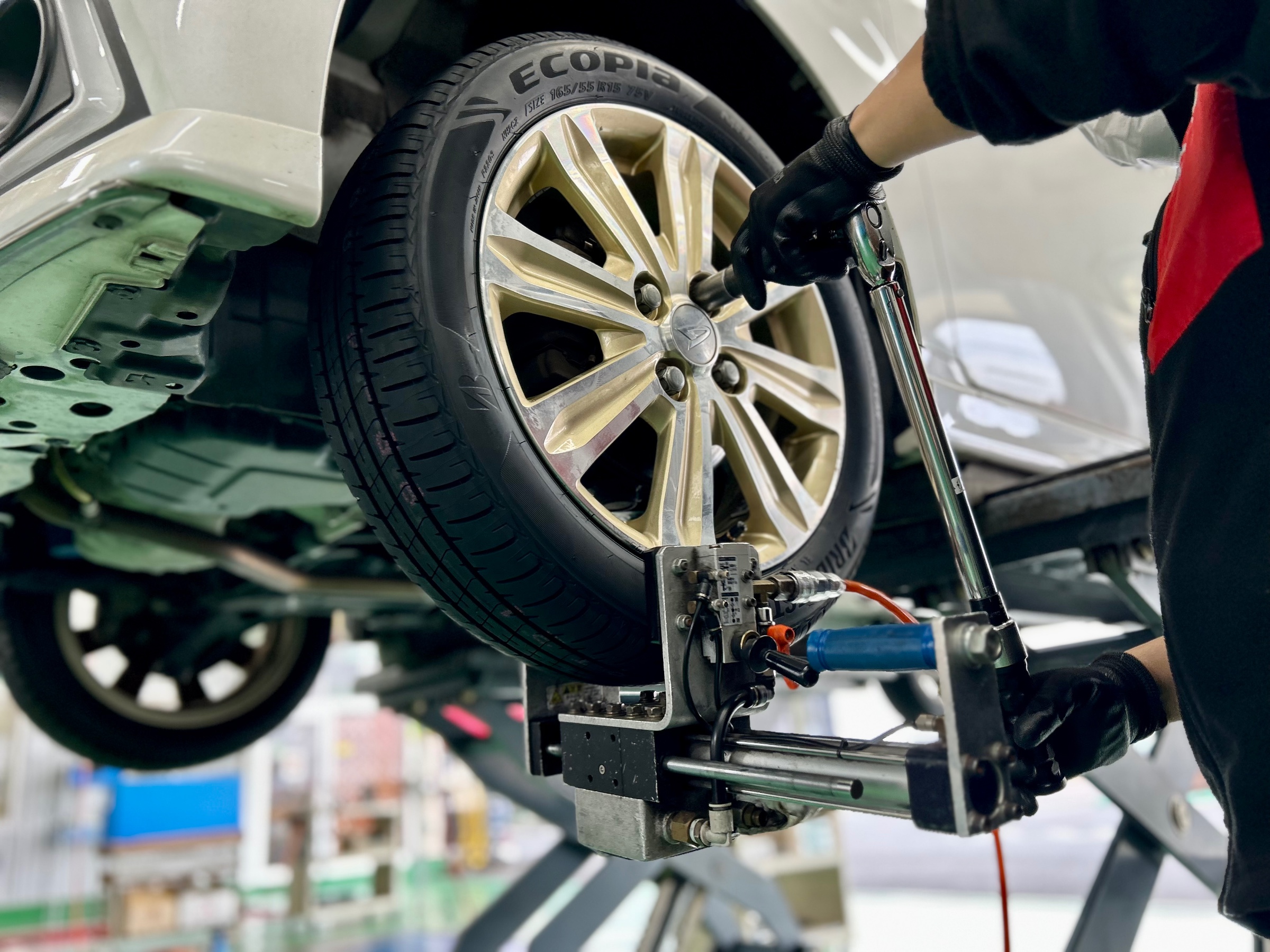 ムーヴ エコピアタイヤ交換&アライメント調整作業