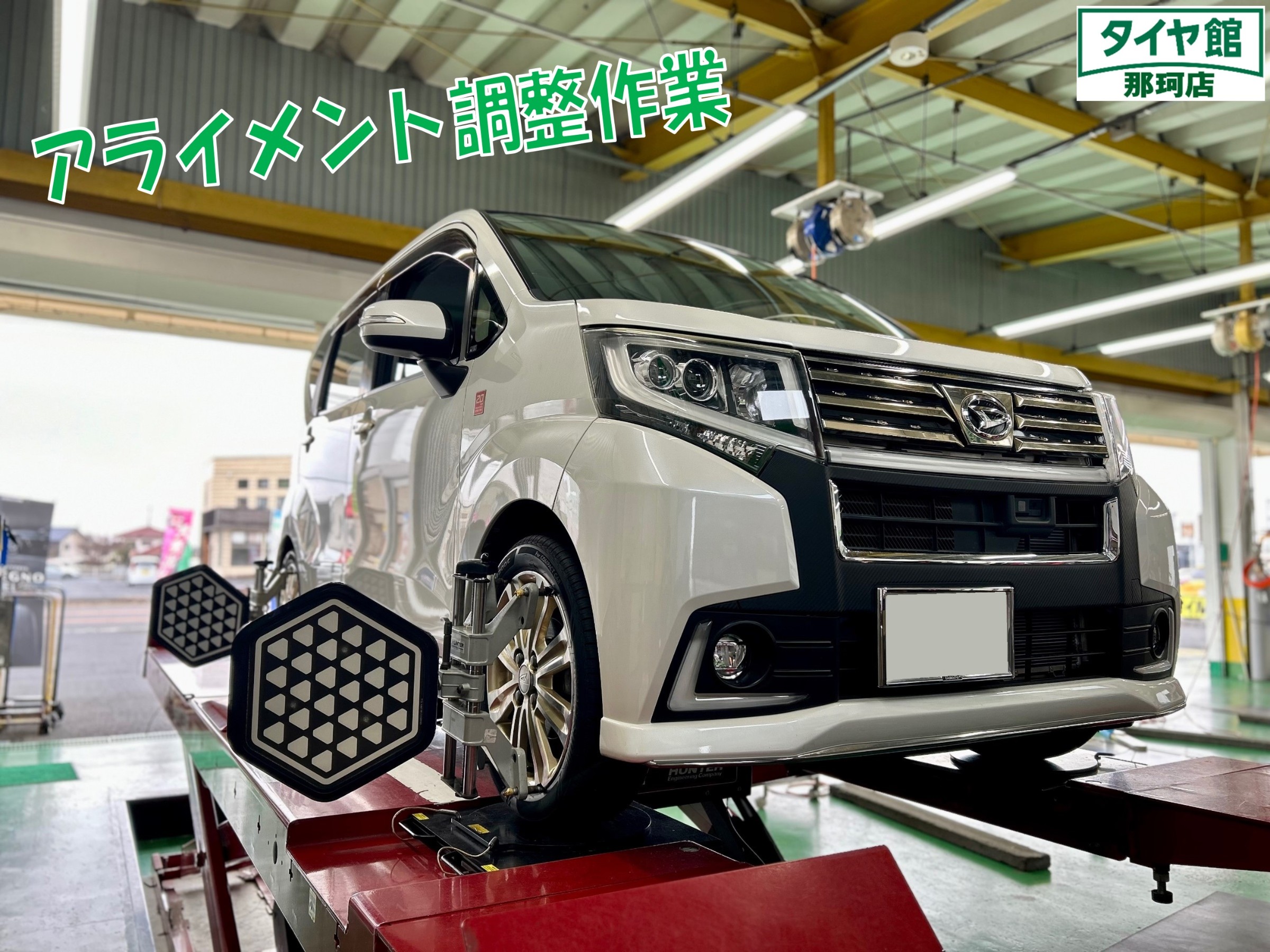 ムーヴのタイヤ交換&アライメント調整作業を行いました☆彡