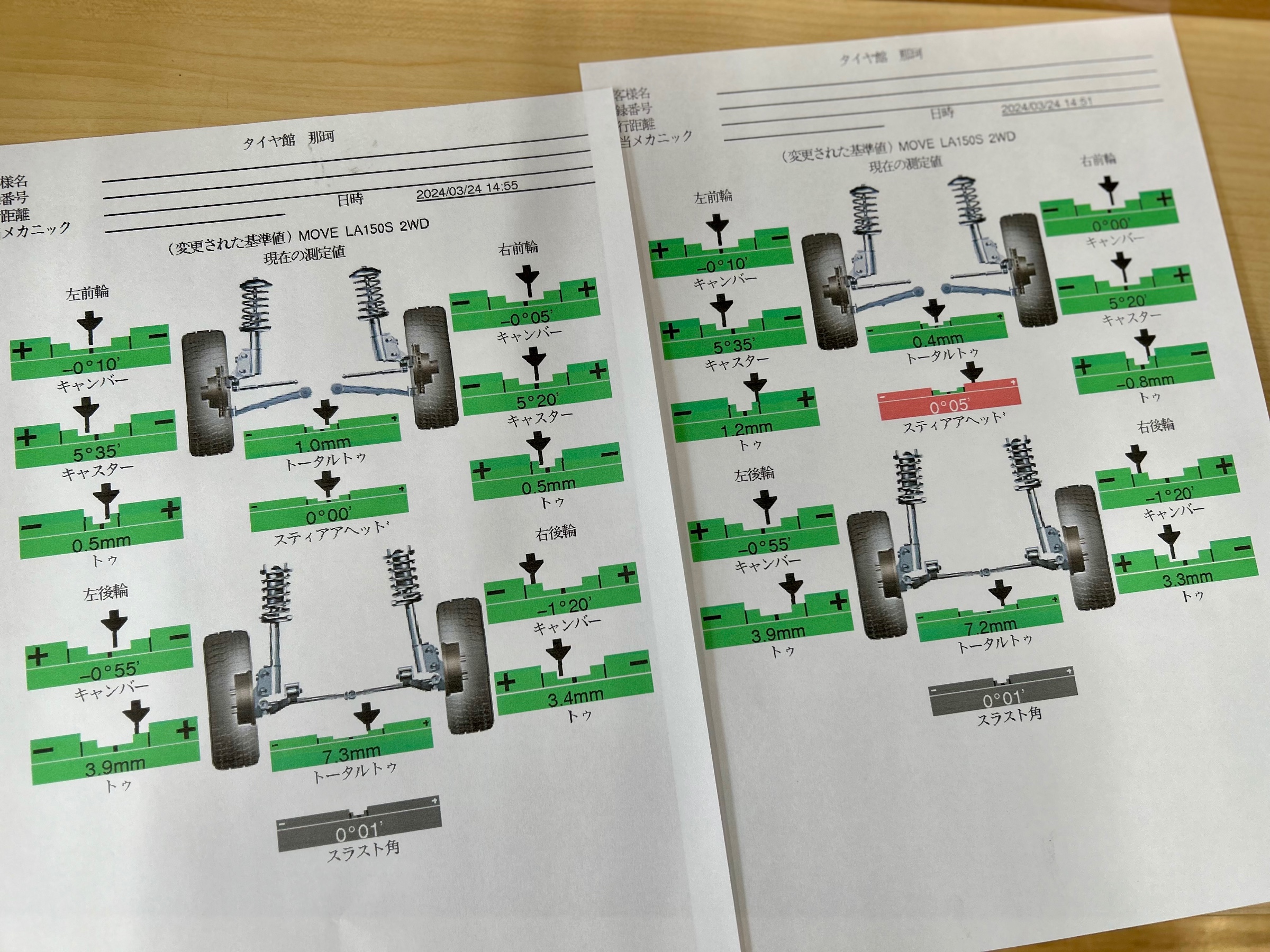 基準値には収まっていましたが左右ズレていましたので修正しました!