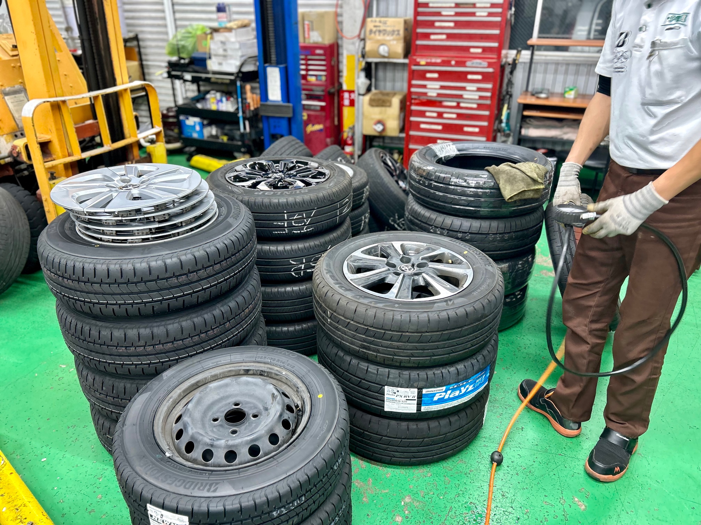 クロークの方や新品の方のお預かりしてますタイヤの空気圧や清掃を行いました☆
