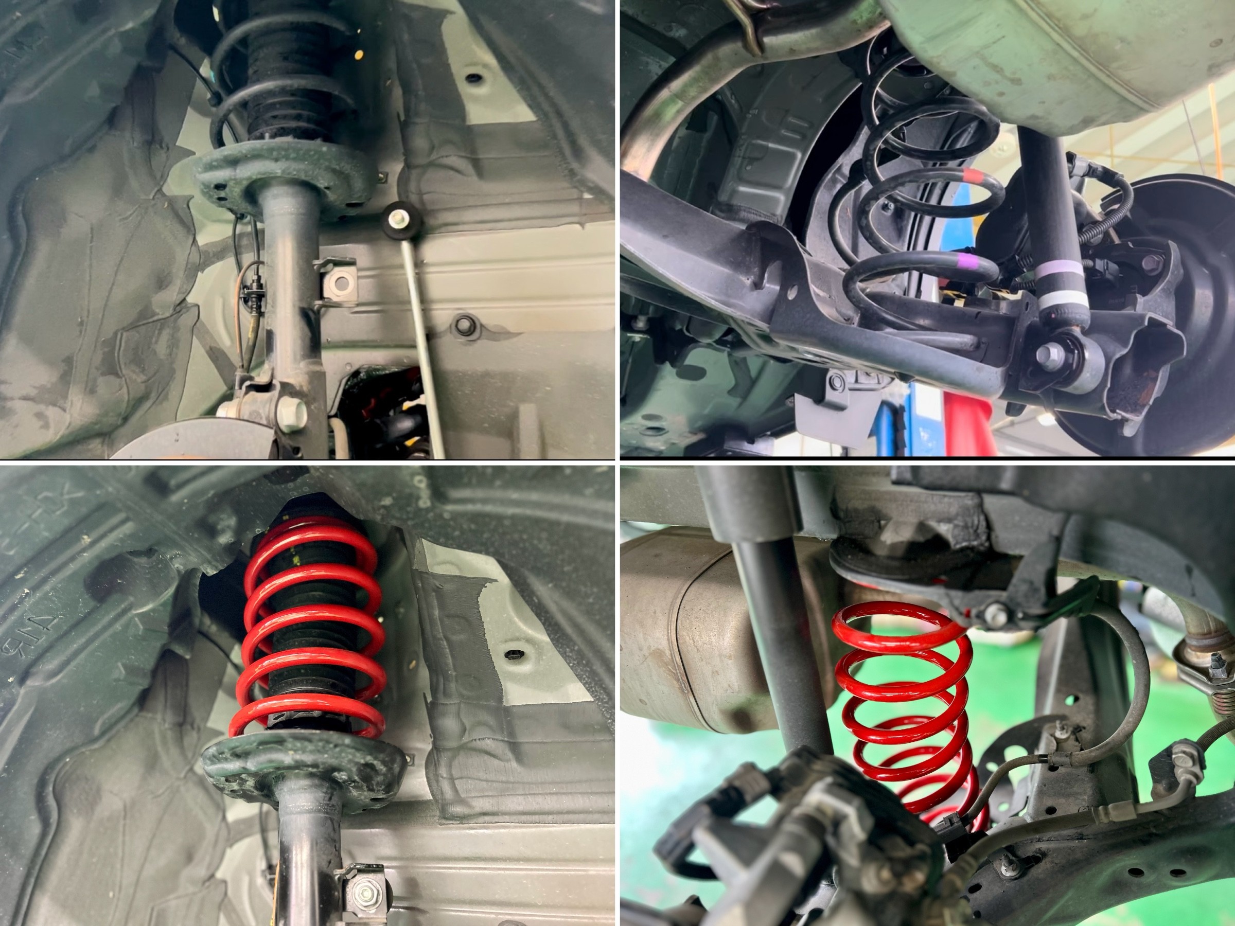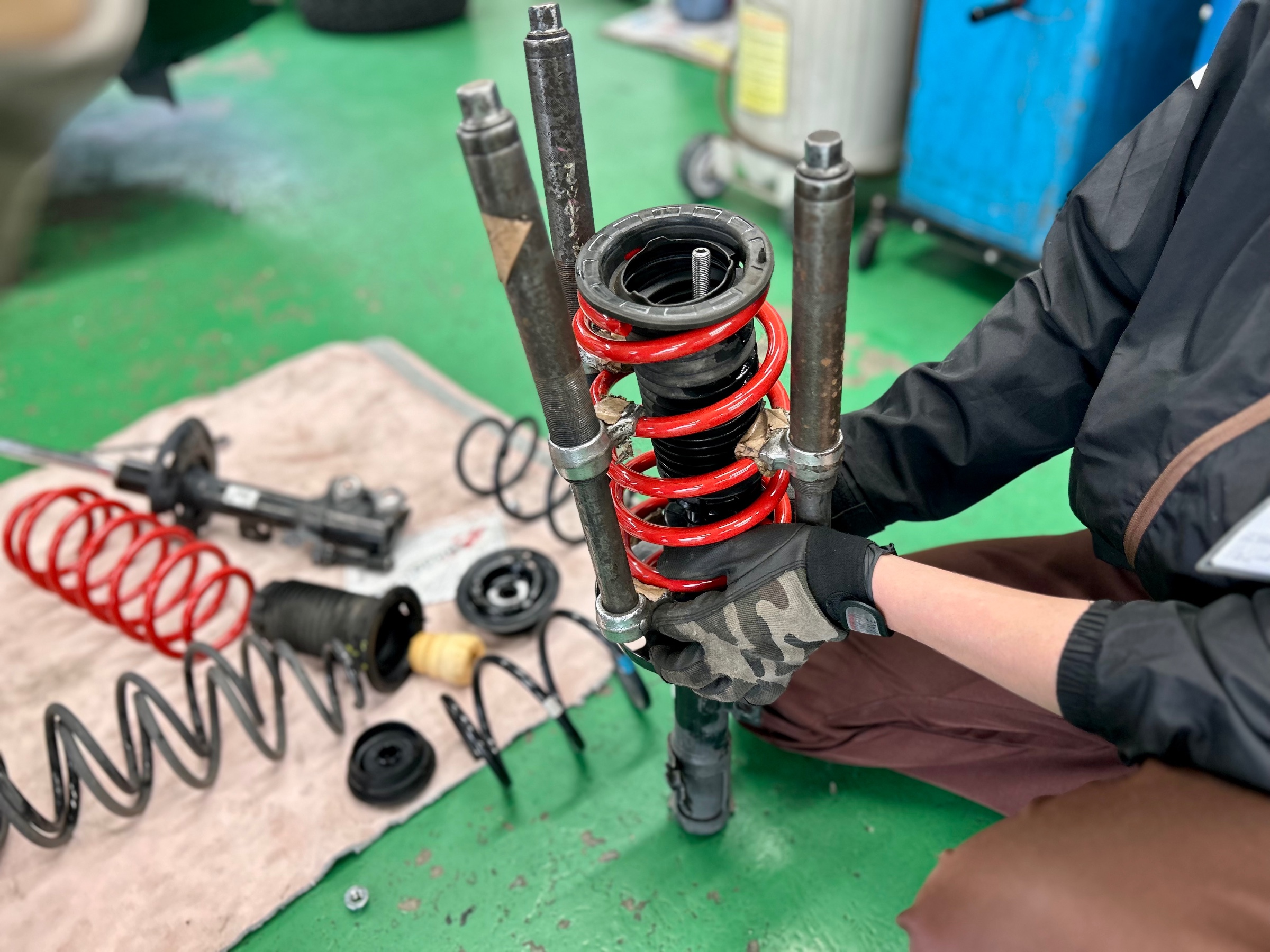 黒い純正バネから赤い社外サスに変わりましたので覗き込むとカスタム感が出てかっこいいです☆