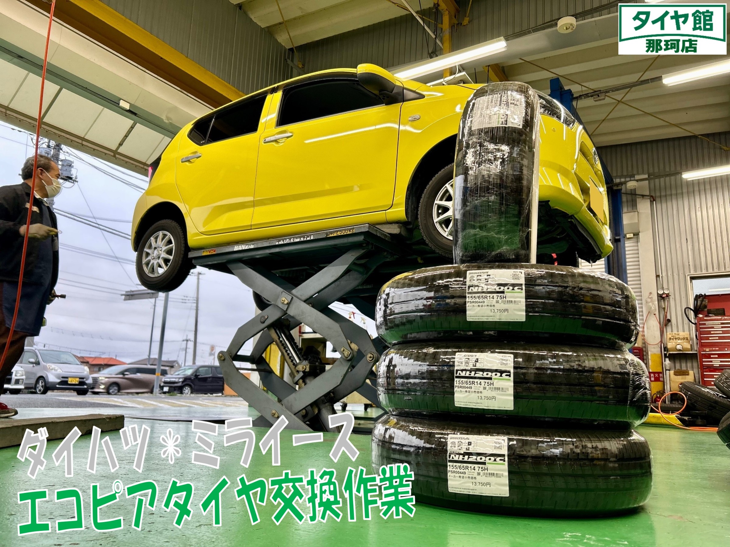タイヤは新車装着タイヤ同等性能のエコピアNH200C 155/65R14 4本交換です♪