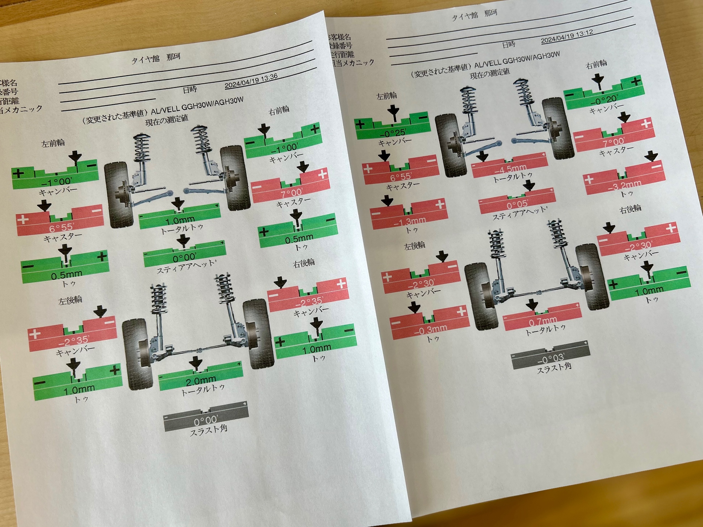 調整箇所は前後のトー4箇所になりますのでしっかり基準値に合わせて完成!!