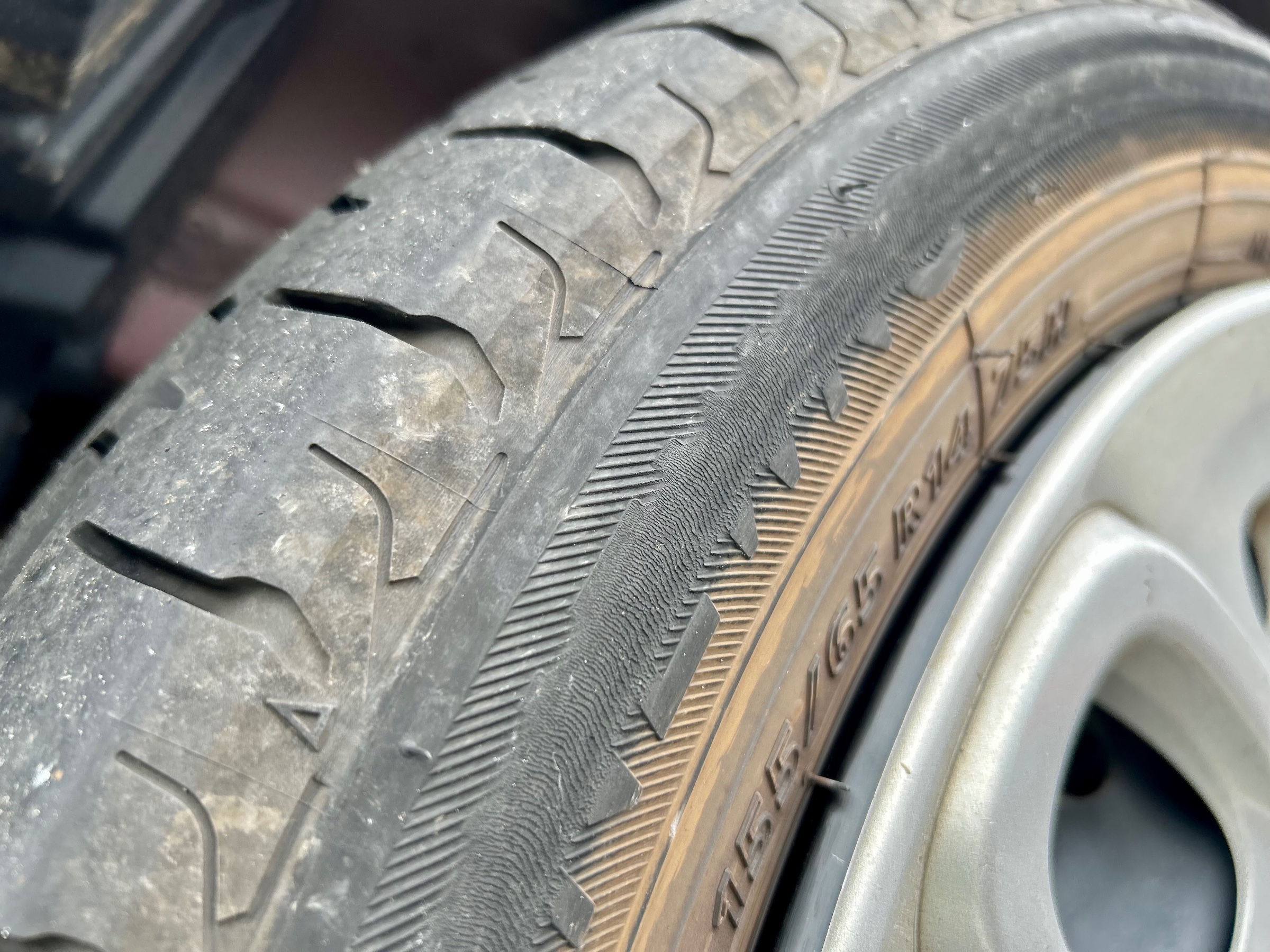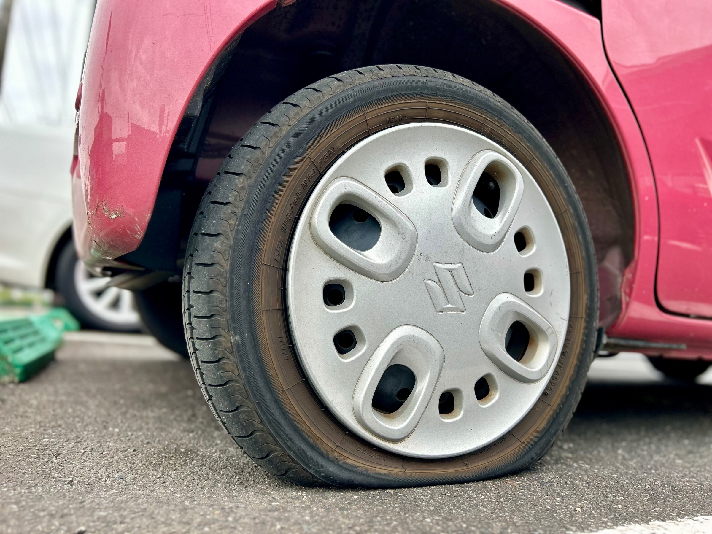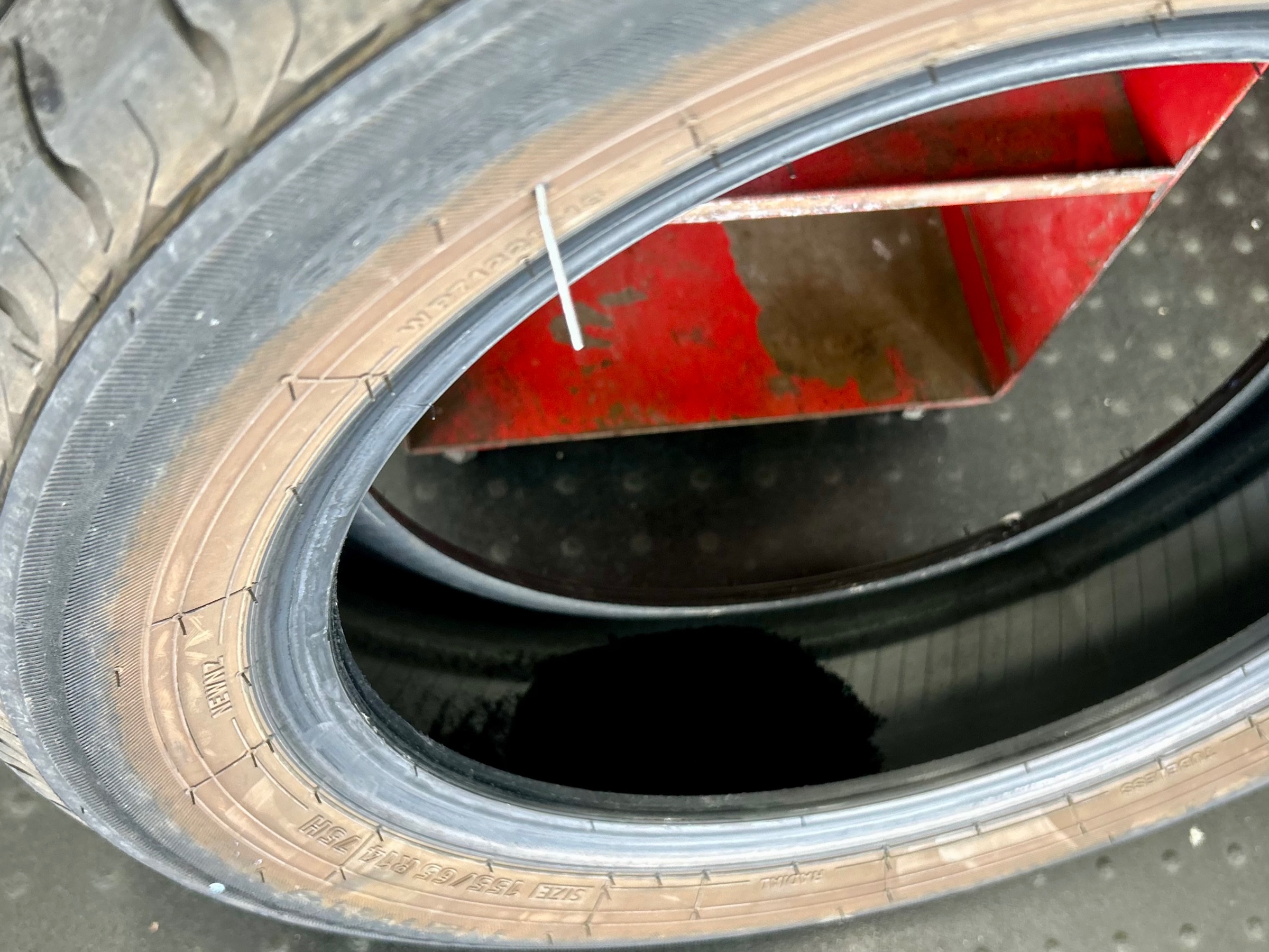 そのまま走行してしまいましたのでタイヤの表面に削れた跡が…