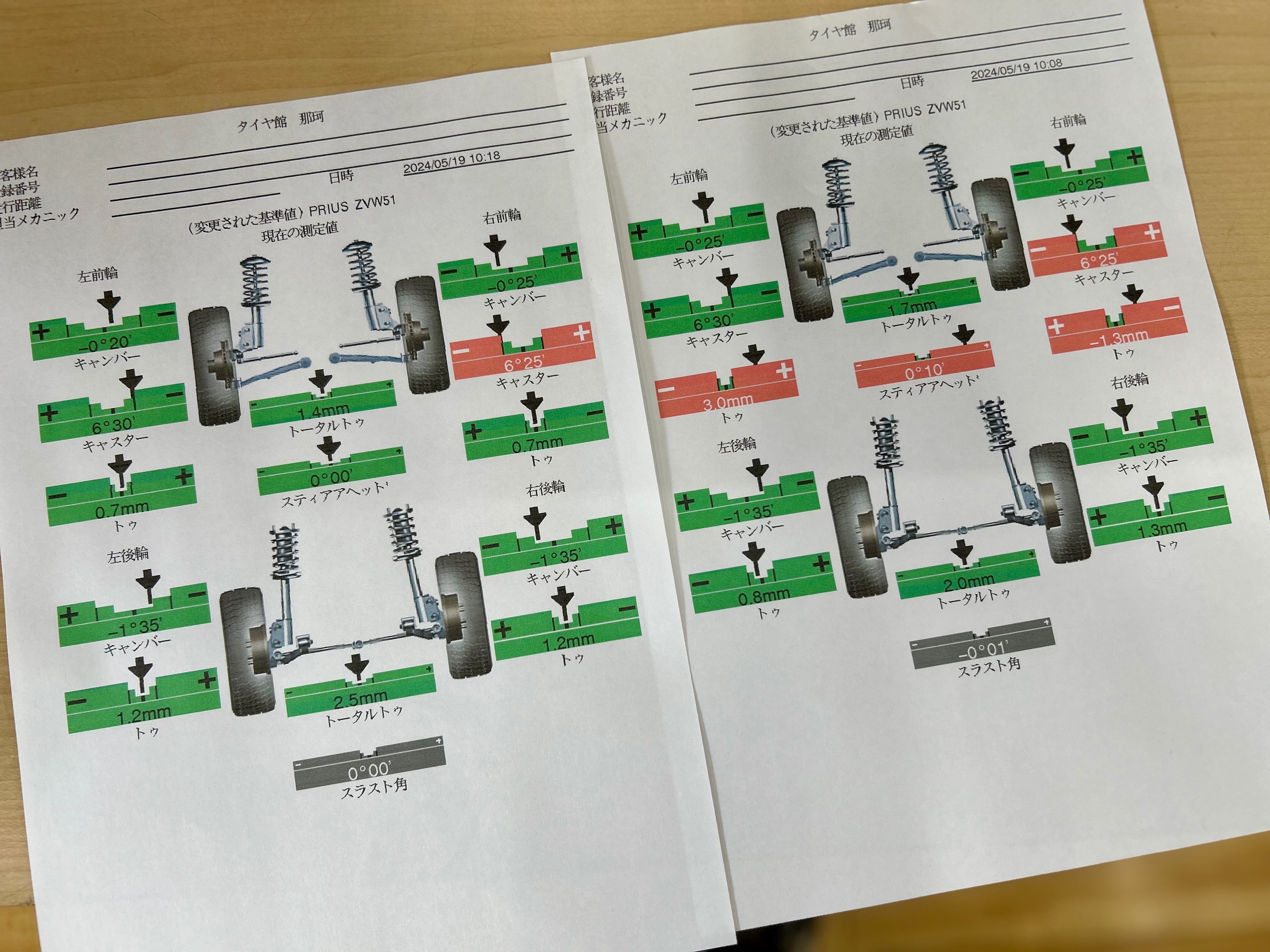 測定してみますとやはりトーがズレていましたので左右のトーを基準値に合わせて完了!!