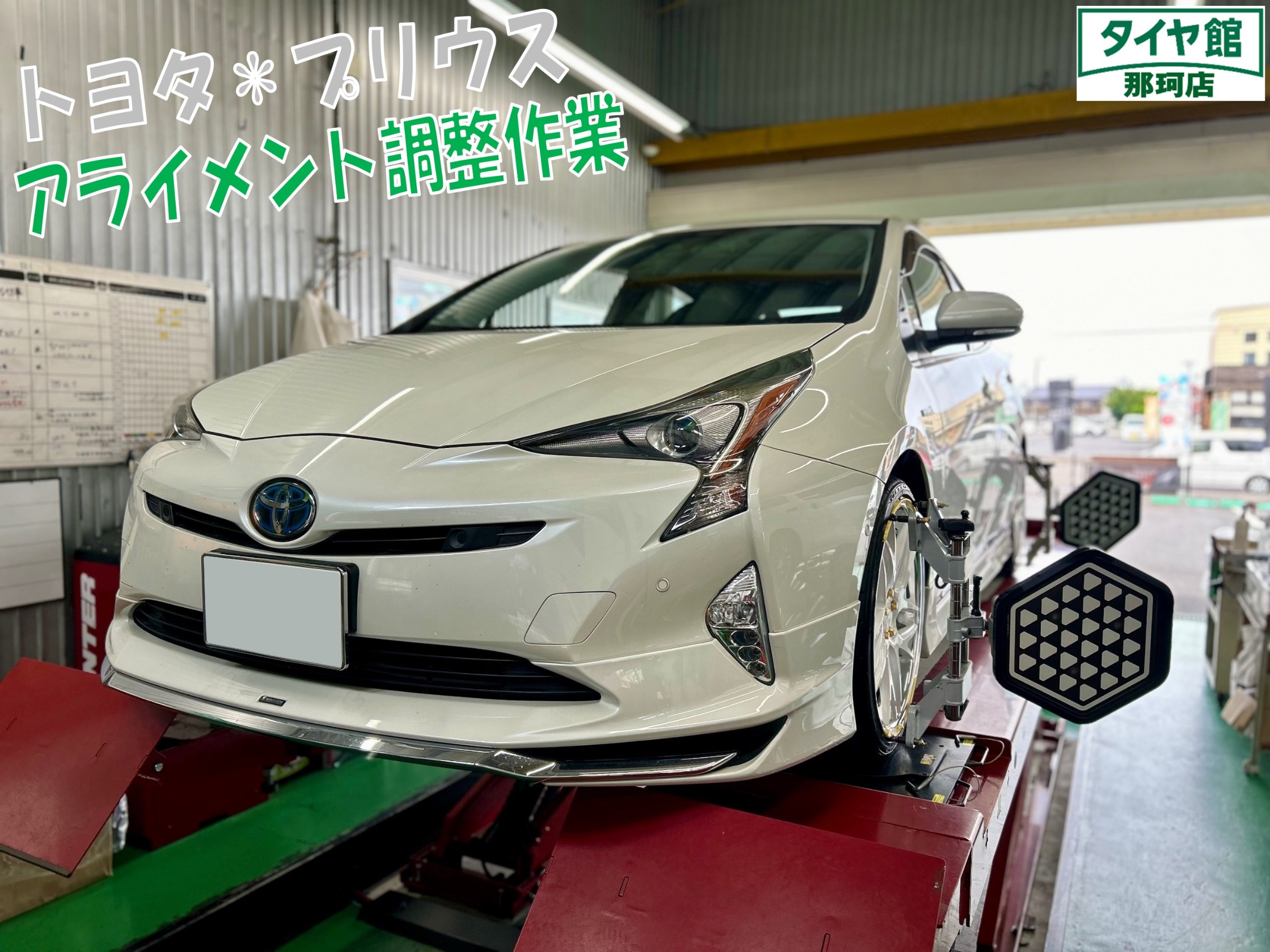 去年の車高調・ホイール大商談会でホイールをご購入下さいました千葉県からお越しのプリウスのアライメント調整を行いました☆彡