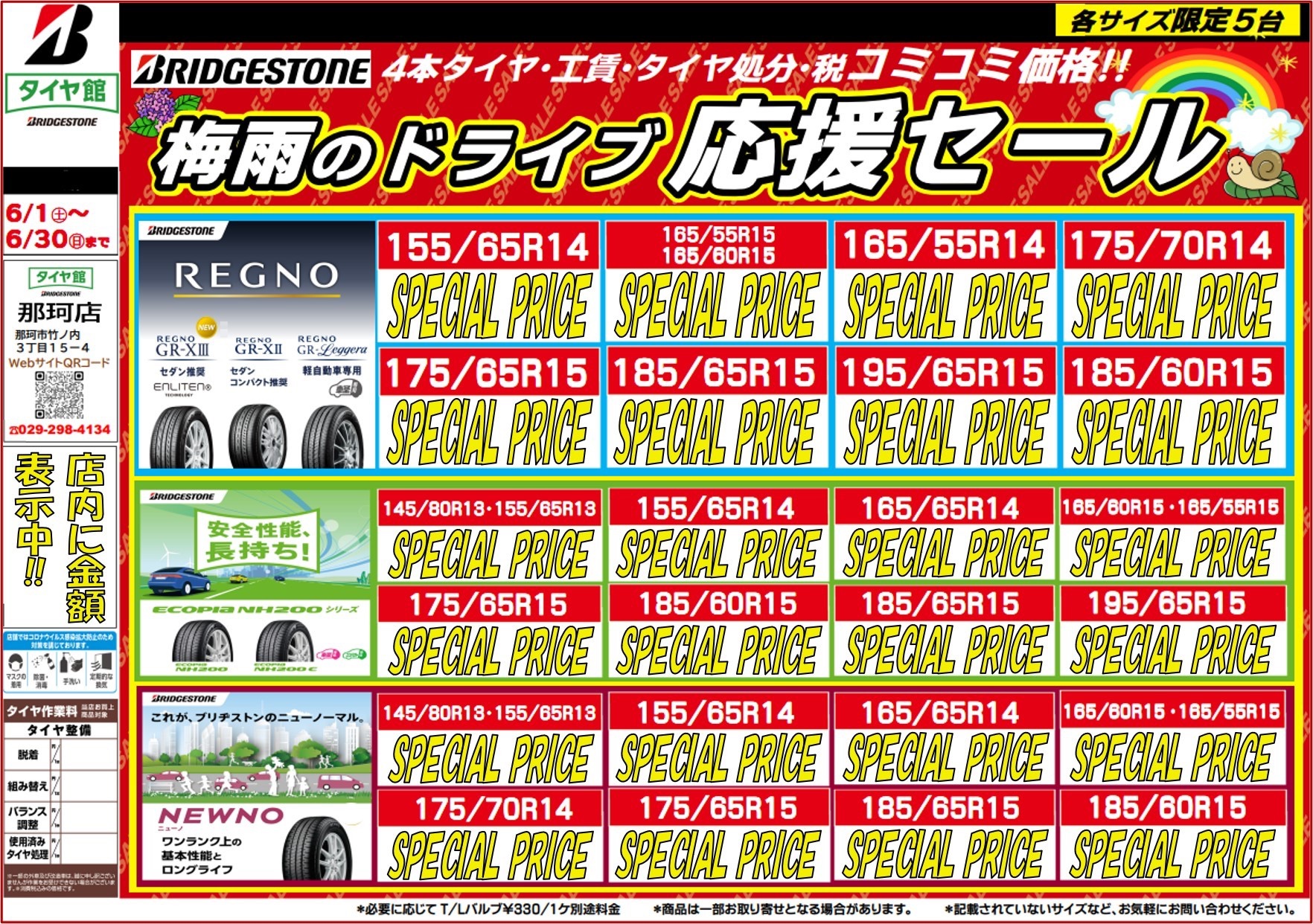 今月は梅雨のドライブ応援セールを行っておりますのでタイヤ交換をするなら今がお得ですよ♪