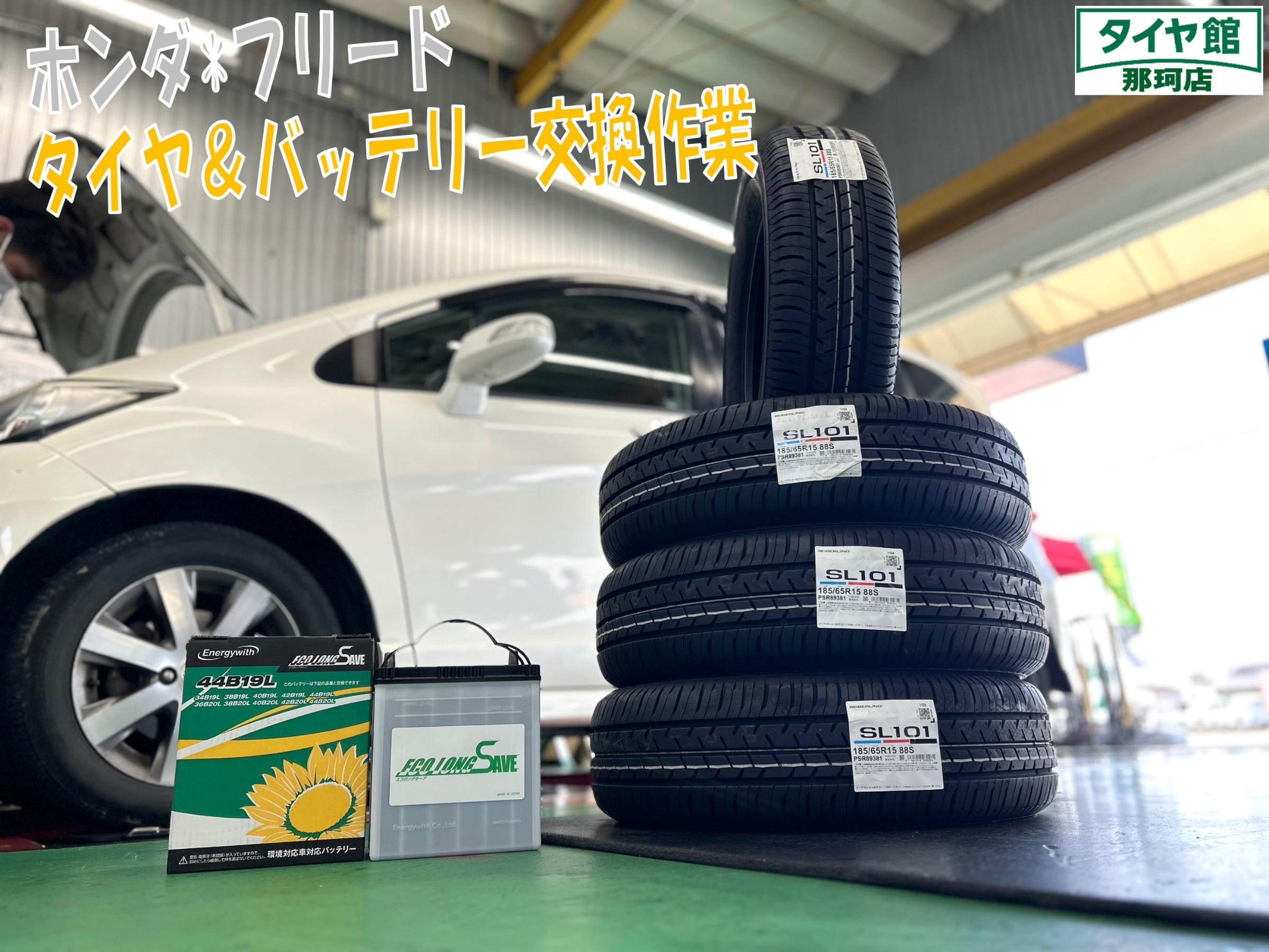 フリードのタイヤ&バッテリー交換を行いました☆彡