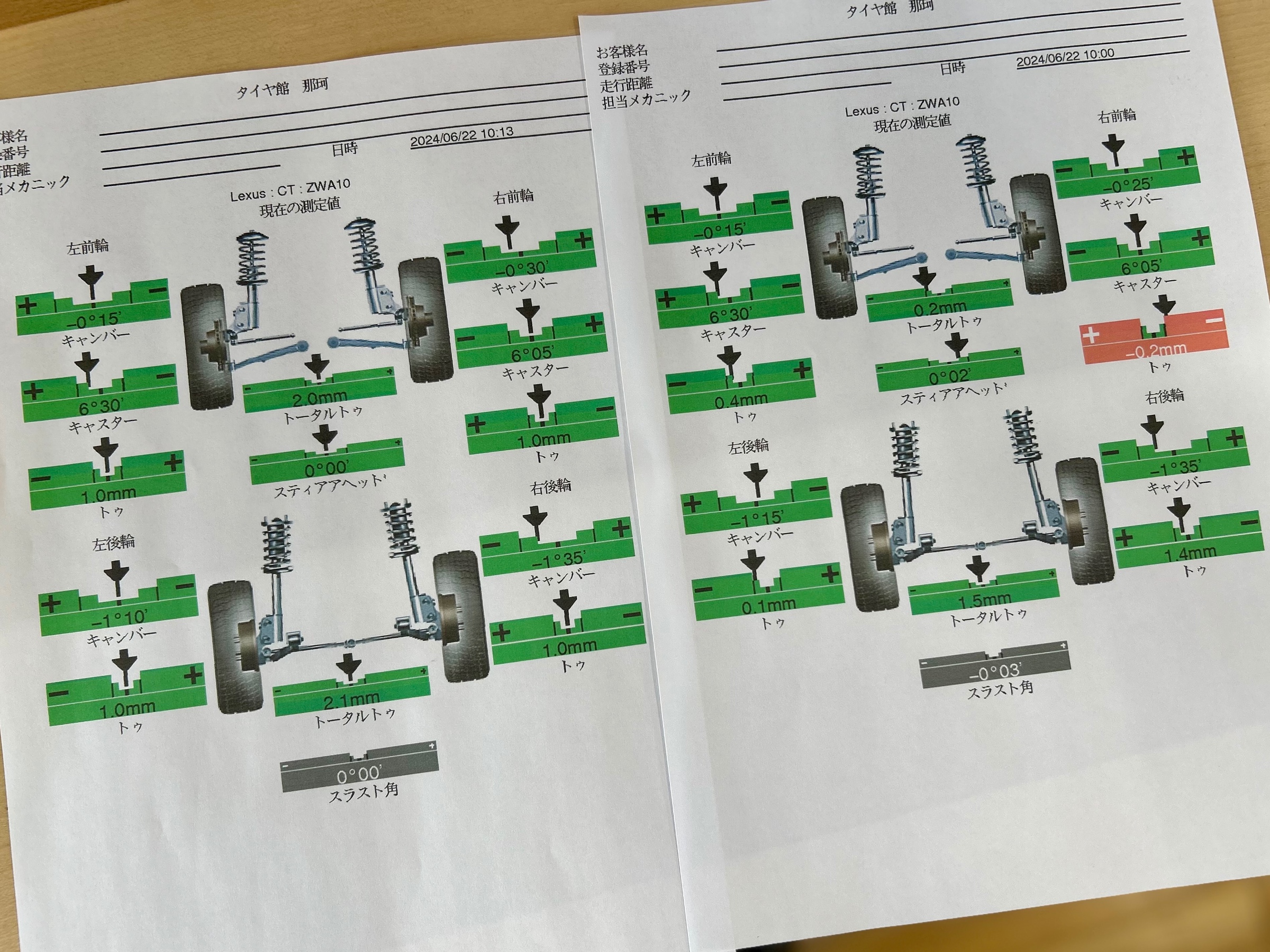 基準値よりトーがアウト気味でしたのでこれが原因かと思われます。。。