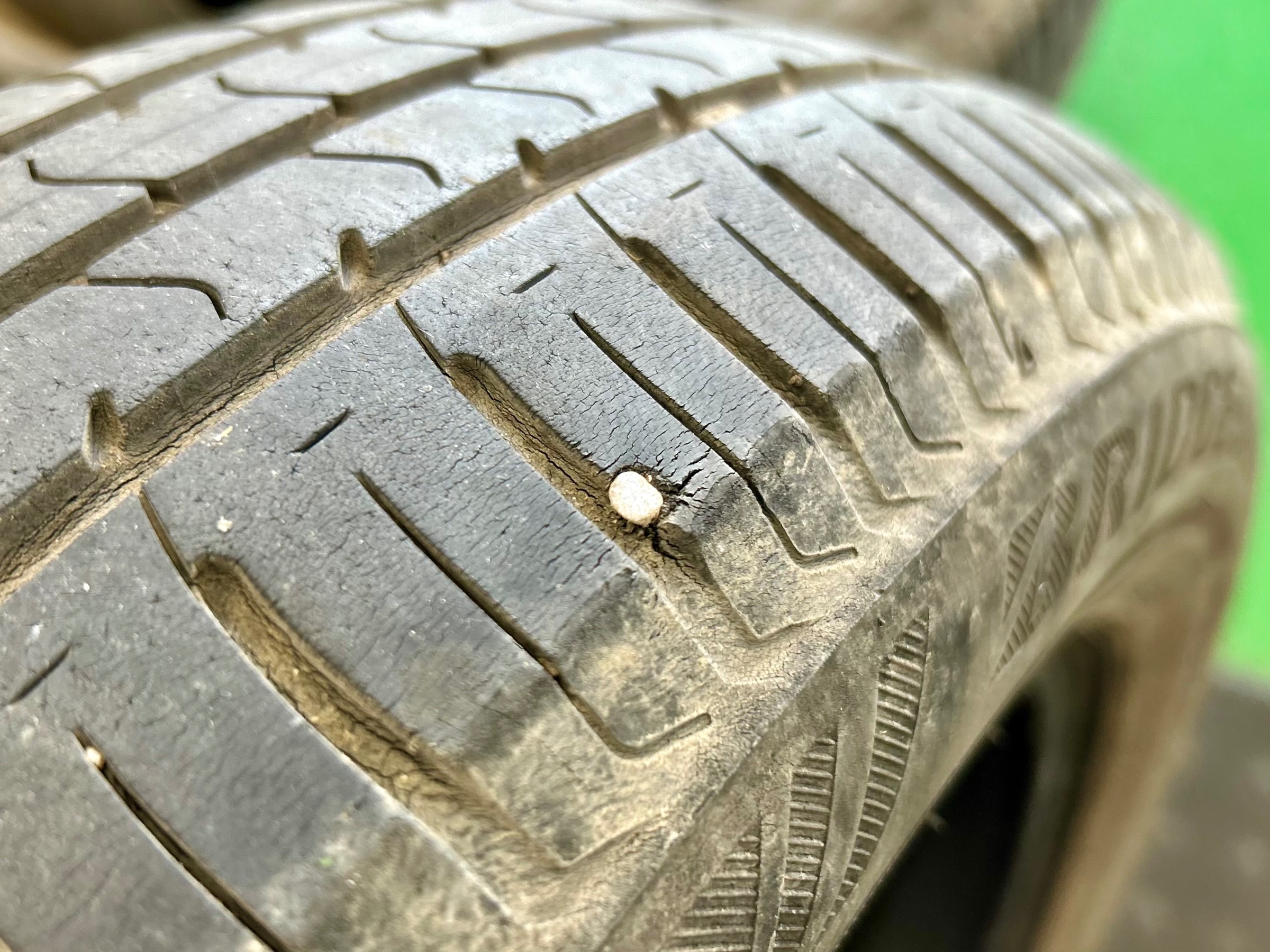 元々はパンク点検でご来店でしたがビスが刺さっている場所が悪く修理が困難なのとタイヤの劣化がすごかったので交換をお勧めさせて頂き4本交換いたしました!