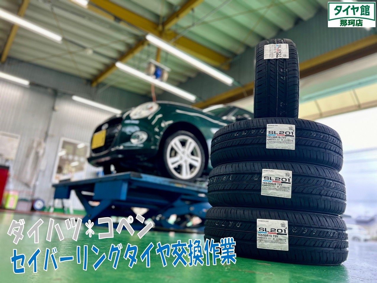ご予約いただいておりましたコペンのタイヤ交換作業を行いました☆彡