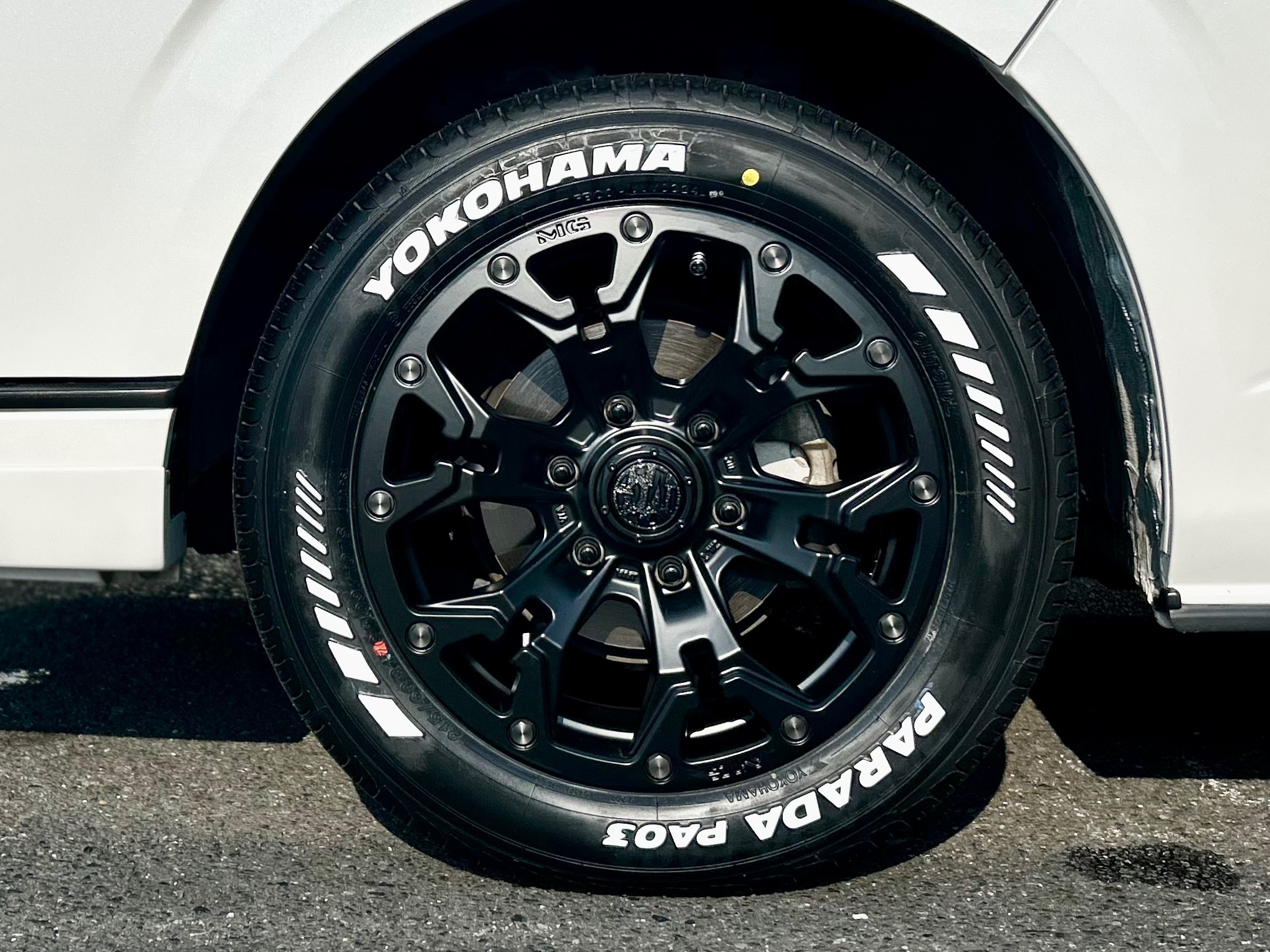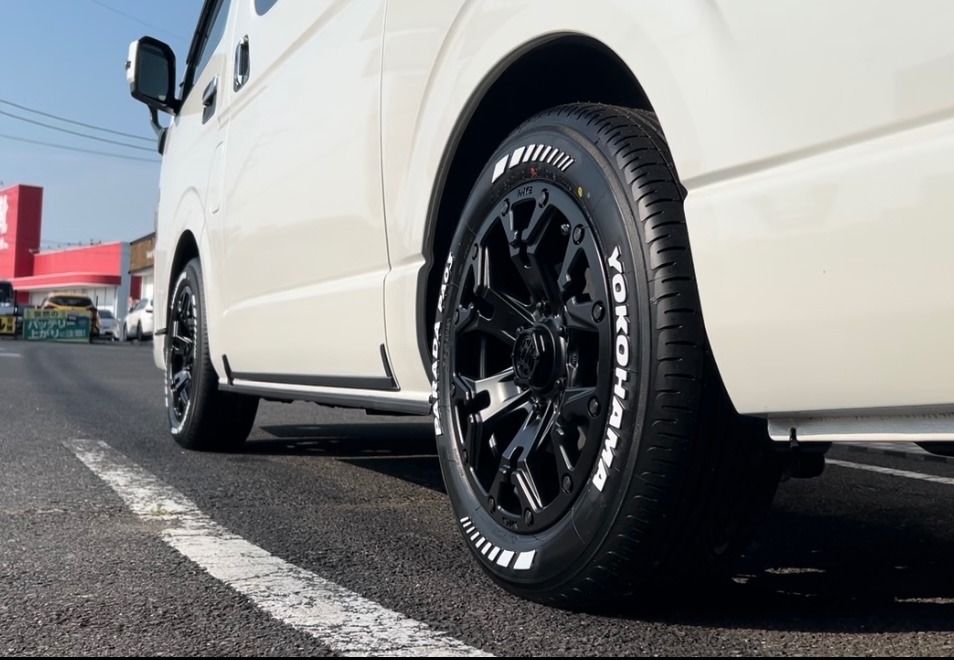 以前にほんのりリフトアップしましたハイエースのホイール交換作業になります☆彡