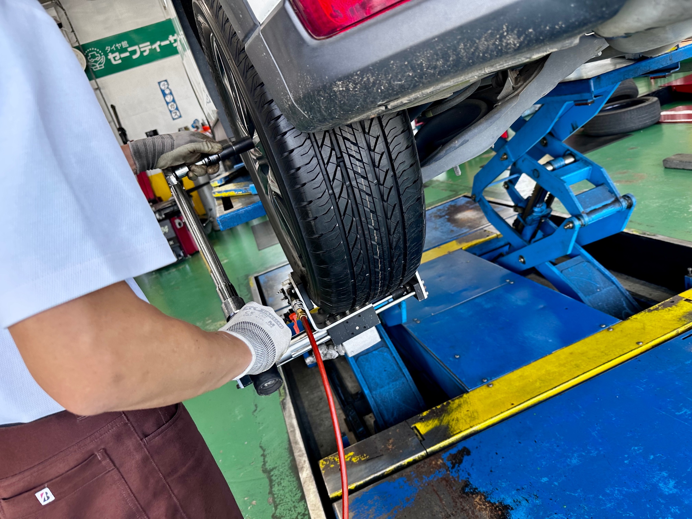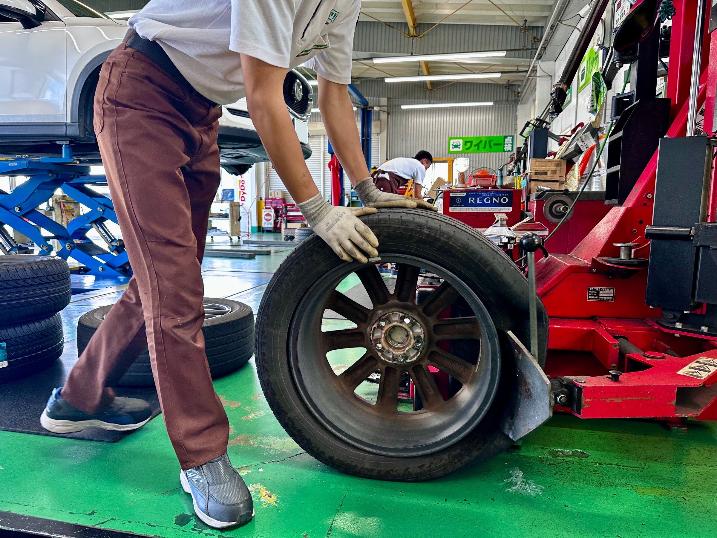 タイヤ交換作業が被らなければ二手に分かれて2本ずつ時短作業を行いお待ちいただく時間を軽減できるように行っております!