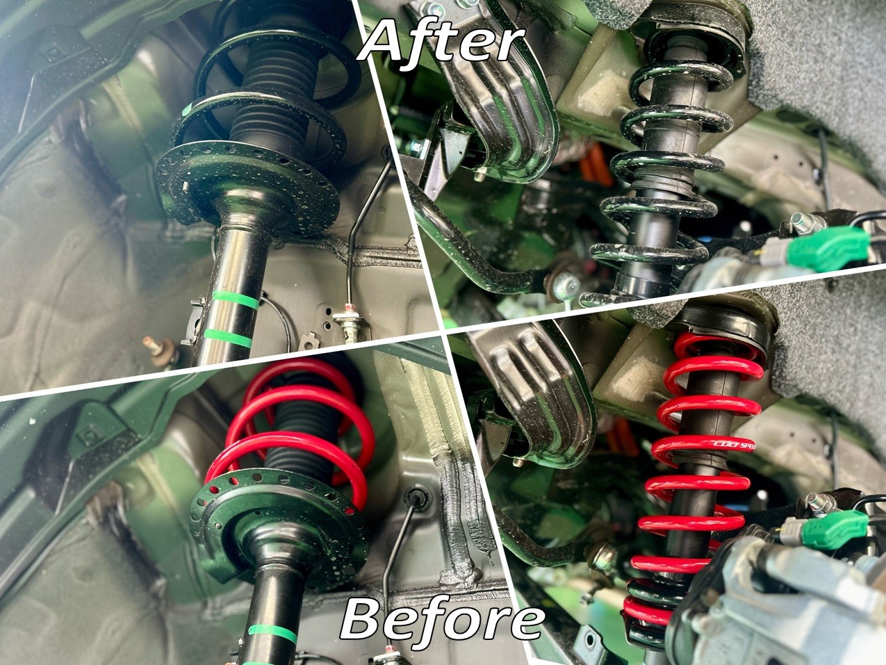 新車でしたのでタイヤハウス内がかなり綺麗でコルトスピードの赤色のサスが目立ちます♪