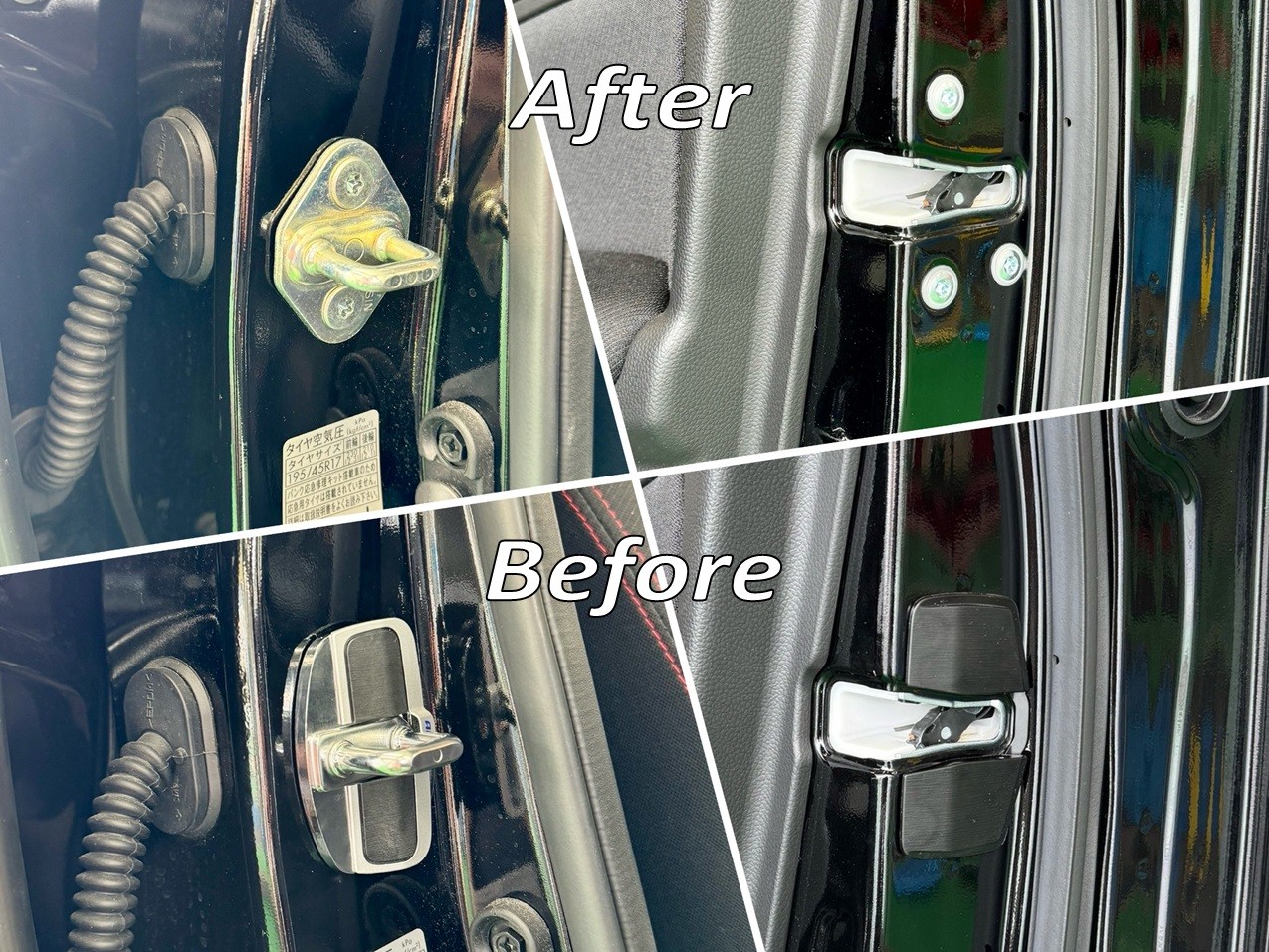 コチラの商品は、ドアキャッチとストライカー部分の隙間をスペーサーにより密着させ、ドア開口部の捻じれや歪みを抑制することで、ステアリング操作時の車両応答遅れを低減し、クイックなレスポンスを実現しる優れもの♪